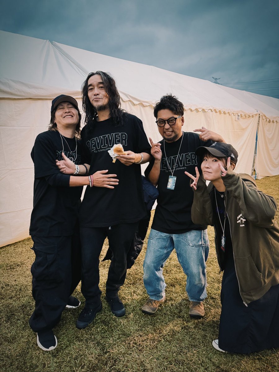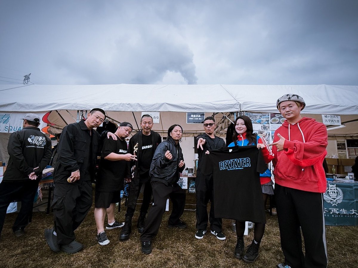 REVIVER Tシャツを ご着用いただいて記念撮影、うれしい😊 茂木さん!有季さん! 寒い中ありがとうございました😭✨ #騎馬武者2025 #gfreakfactory #岩崎有季 #REVIVER #Lightnear pic.x.com/2SXET6pDyU
