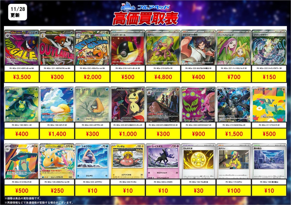 ━━━━━━━━━━ 🎉最新弾買取情報! ━━━━━━━━━━ #ポケモンカードゲーム #MEGAドリームex 18時からの買取表はこちら✨ お持ち込みお待ちしております! ※在庫状況などで予告なく変更の可能性がございます。 #高価買取 #ポケカ pic.x.com/Gh9Kw0i7nM