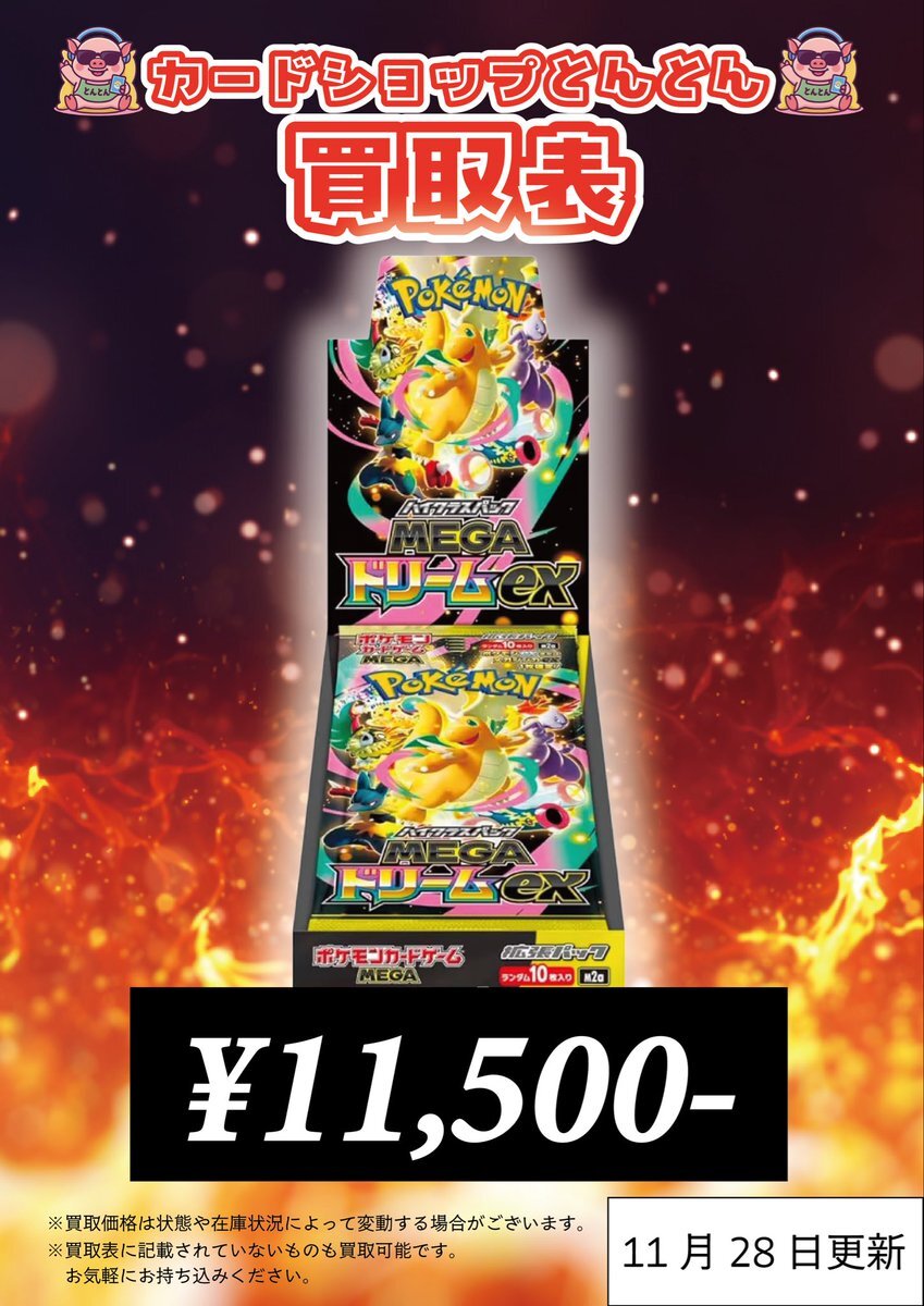 🆙とんとん買取表更新🆙 ˗ˏˋ 最新弾 #MEGAドリームex ˎˊ˗ MEGAドリームex(シュリンクあり)を 募集しております🚲 ³₃ お持ち込みお待ちしております🐷🔥 #カードショップとんとん #秋葉原 #ポケモンカード #ポケカ #高価買取 pic.x.com/1fqsZTOgbZ