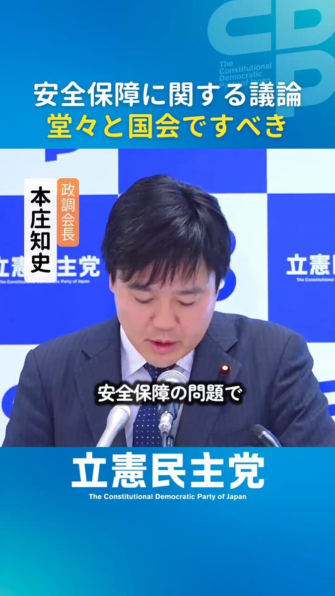 🗣️\非常に危険な状況だ!/ 「誤った言説が大手メディアなどでも取り上げられるのは極めて問題」 「安全保障に関する議論を、国会でせずしてどこでするのか」 #本庄知史 政調会長の会見です💬 #立憲民主党