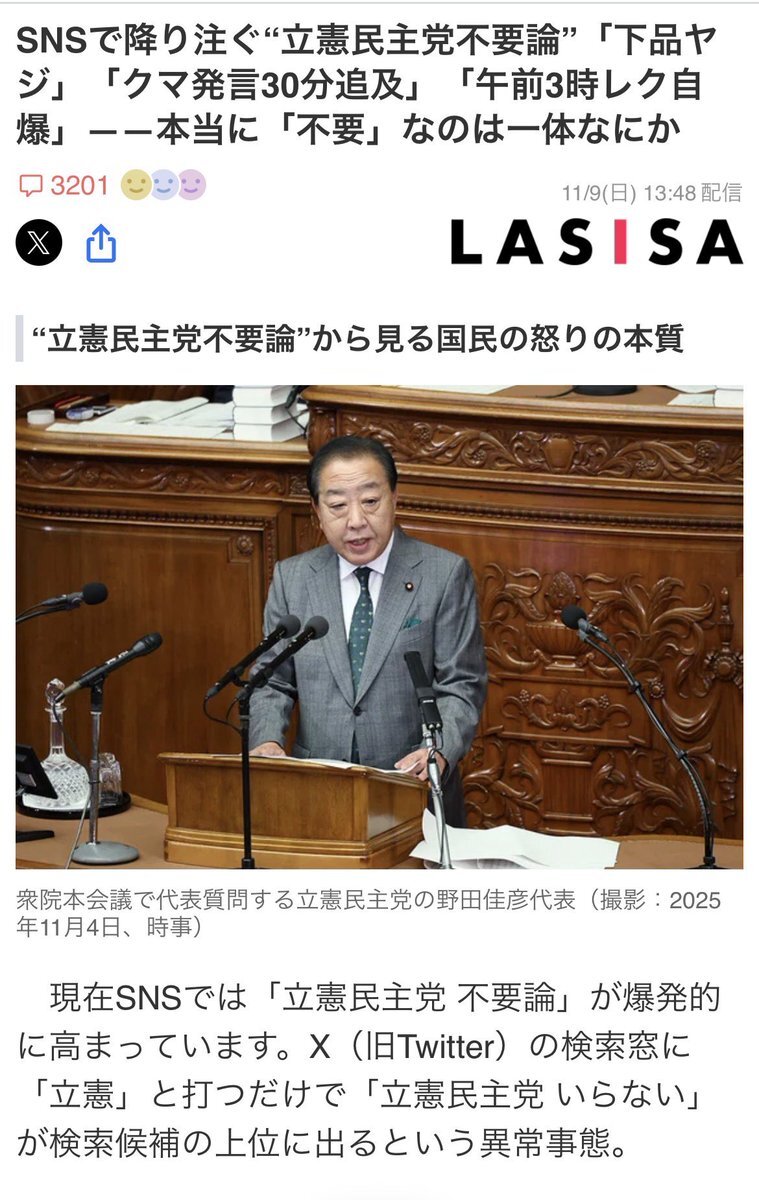 立憲は質問通告を遅く渡して 国会でも高市さんにだけ質問を集中させ 睡眠障害に追い込む作戦では? #高市総理を守ろう x.com/sxzBST/status/…