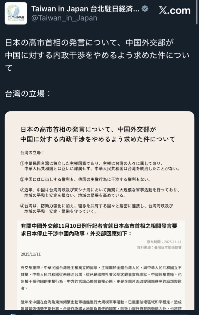 中国が台湾に侵攻しなければ存立危機問題は起きないんだから左翼連中は今の政権批判しないで中国が悪い事しないように騒ぐべきなのに何故か高市批判に持っていく #台湾有事 #高市総理頑張れ