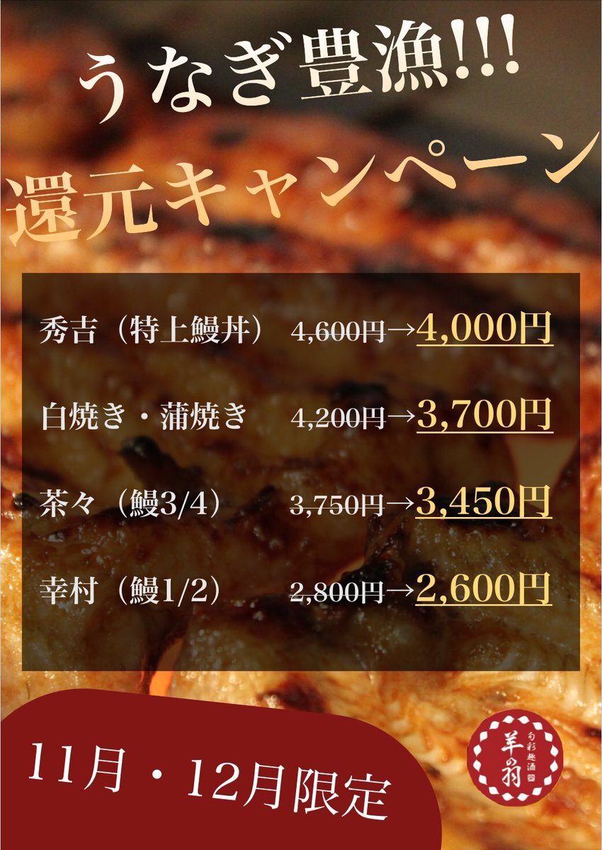 こんにちは☀️羊の羽です🐏 本日もランチ 11:30~14:30(L.O.14:00)    ディナー 17:00~22:00(L.O.21:00)で営業しています。 ただいま豊漁キャンペーン開催中です!! たくさんのご来店お待ちしております🤲  菊まつりも17日まで開催しております🍁 # #うなぎ  #高幡不動 #羊の羽 pic.x.com/YuLNowHbh0