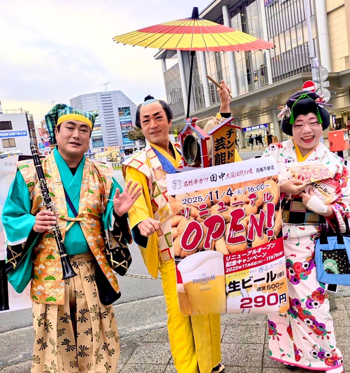 11月4日(火)、「串カツ田中 高幡不動店」がリニューアルオープン! 京王線高幡不動駅前のロータリーを周り、たくさんの日野市民に宣伝させていただきました。 #串カツ田中 #高幡不動 pic.x.com/26gMwzhDxK
