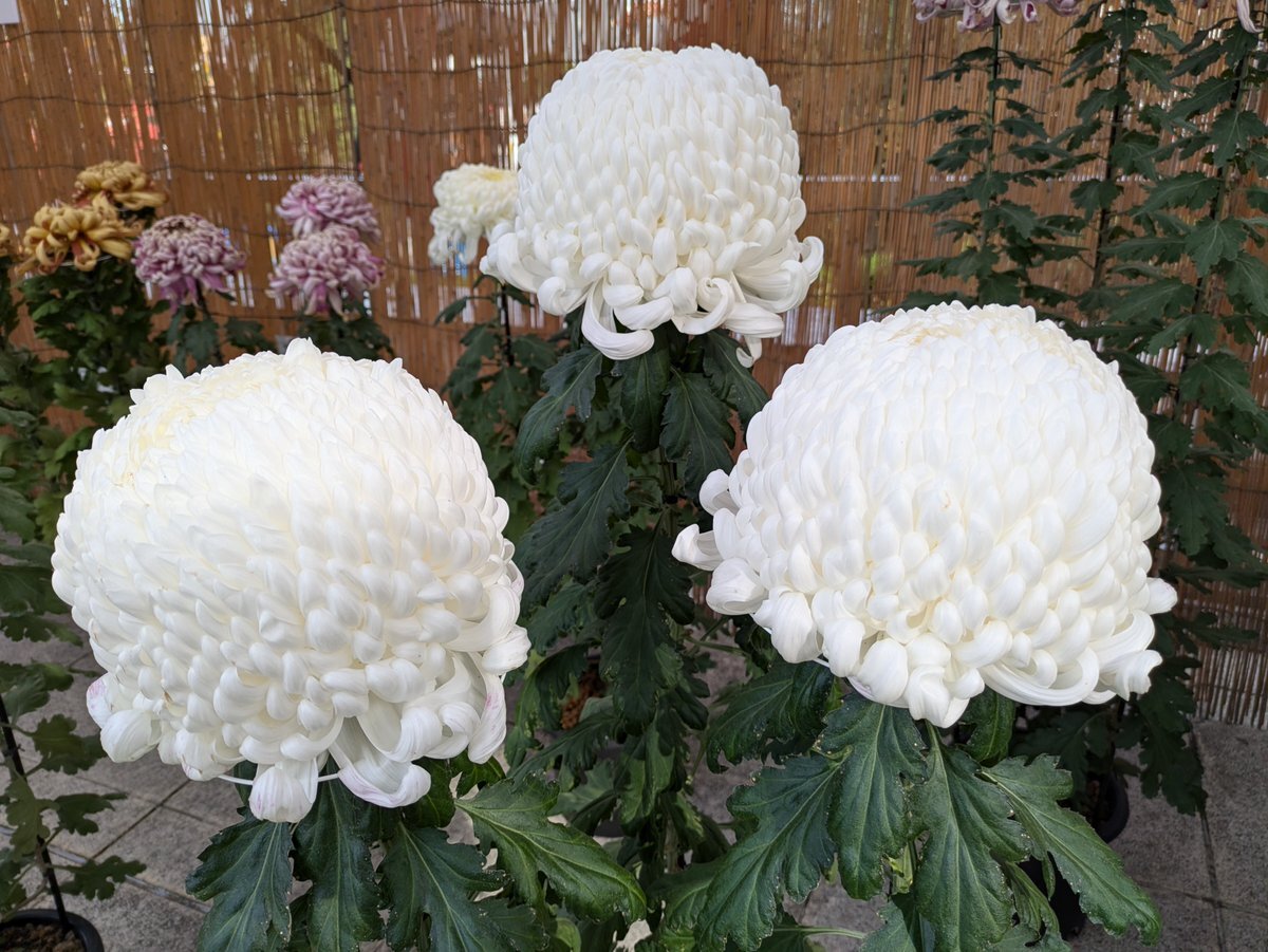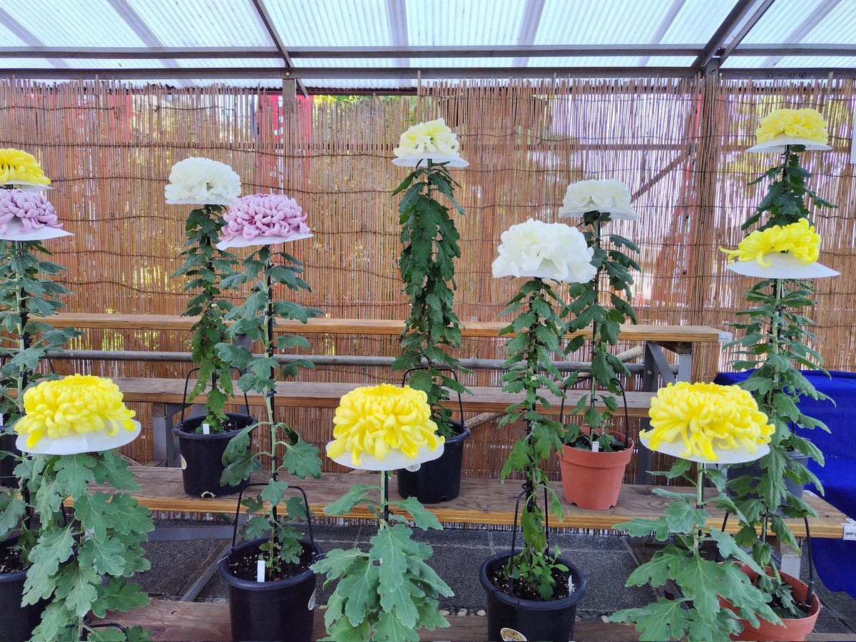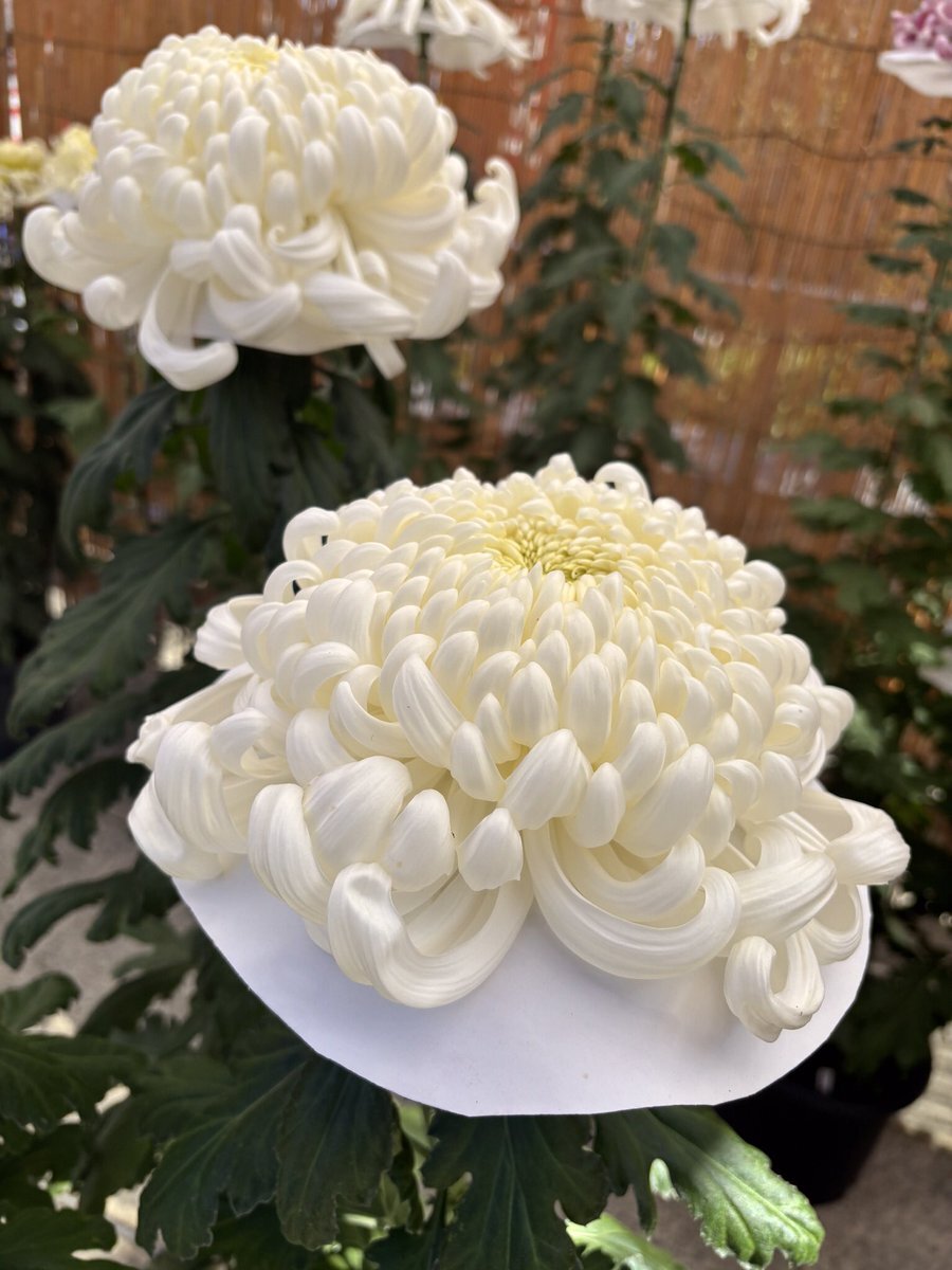 賞を取った菊はやっぱり凄い。 理事長賞の作品(写真一、二枚目)、焼餃子を並べているように見えた🥟🥟🥟🥟🥟 見えない?笑 #高幡不動 菊まつり pic.x.com/5i5HNuVDqI