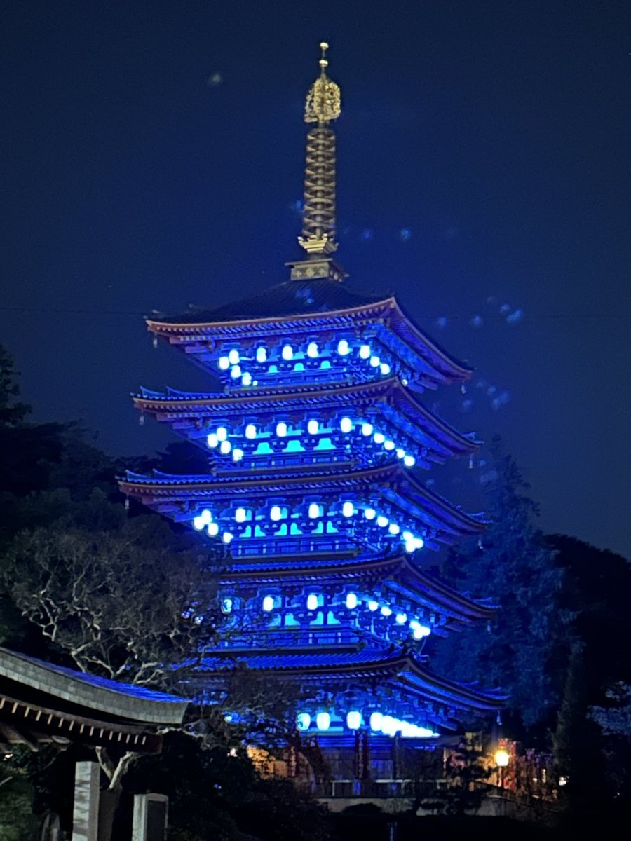 #世界糖尿病デー のライトアップ 青い提灯つきました🏮⋆.*⃝̥◌̥💙🩵💙🩵💙🩵 #高幡不動五重塔 #高幡不動 #日野市 #高幡不動参道会 pic.x.com/xZfHfev69X