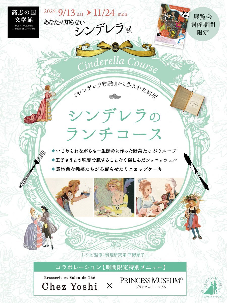 #高志の国文学館 #シンデレラ展 開催中👗 大好評!シンデレラ物語から生まれたランチコース✨ 会期中、当館併設レストラン「シェ・ヨシ」にて絵本を再現したコラボ・ランチコースをご提供しております🍴 観て味わって、五感で楽しめる企画展です😋 皆様、ぜひお越しください❣️ pic.x.com/1atLyknA1I