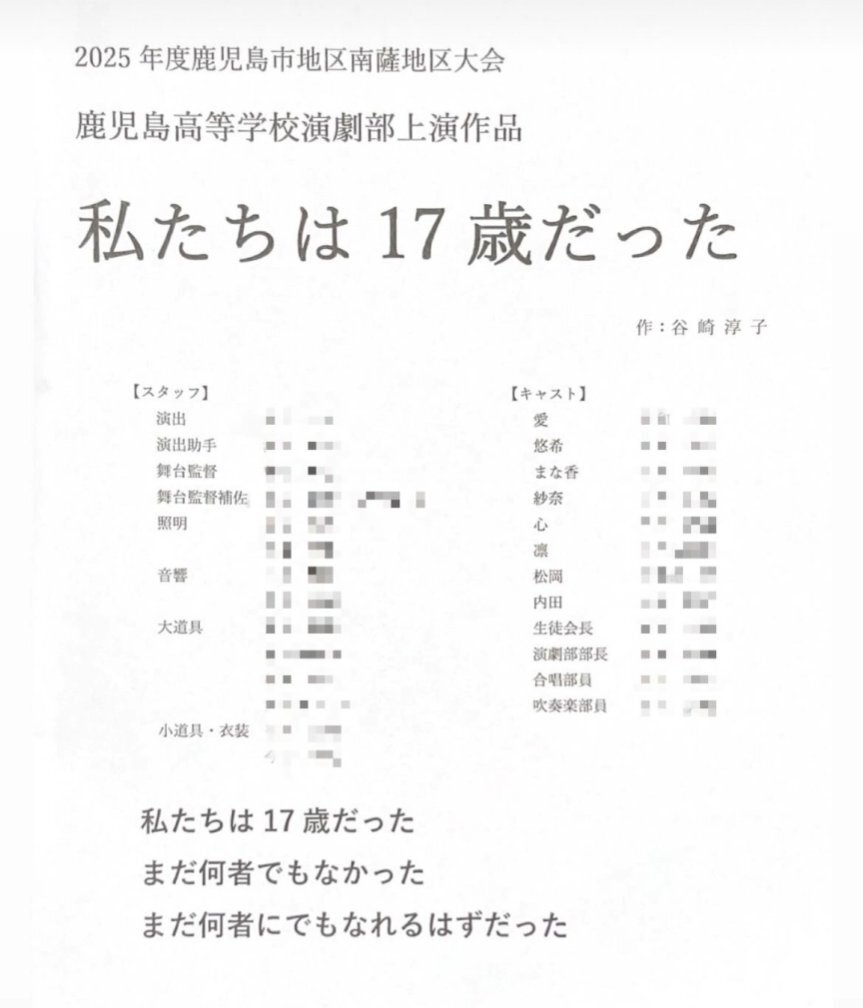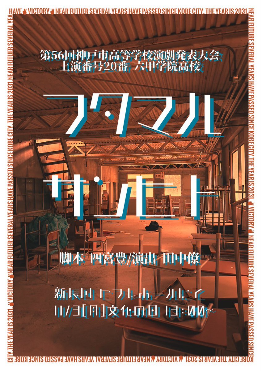 上演番号⑳六甲学院 2025コンクール フタマルサンヒト 11/3(祝月) 13時00分 開演 「…この物語は、フィクションである…が、6年後位においては定かではない」 #六甲演劇部 #神戸支部 #高校演劇 pic.x.com/zS9q8YcJSn