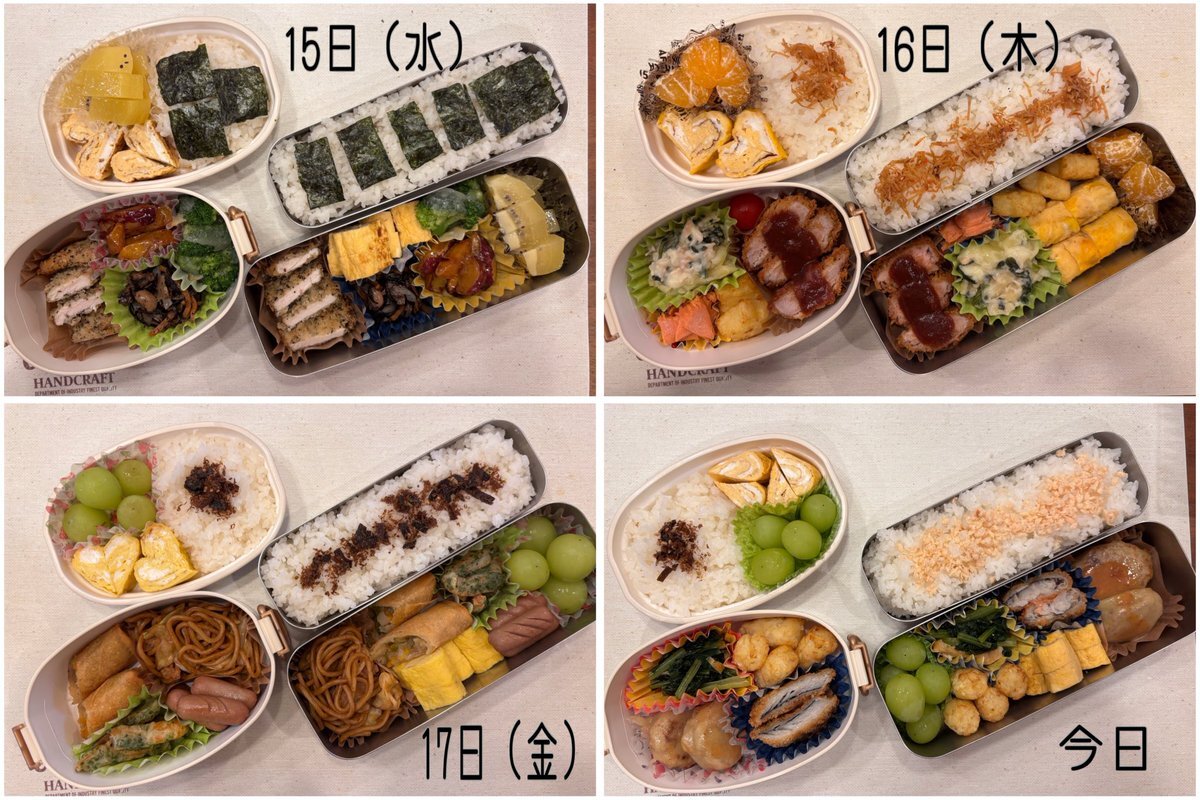 お疲れ様です🍵 今週もお弁当終わりました☺️ ここんところ家族みんな、なんだか体調崩してます🥹 学校でも欠席多いみたい🥹 今日と明日は長男の学校で文化祭です🎶 昨日は遅い時間まで準備していて、高校生ぽくなってきたなぁ☺️ #お弁当 #高校生男子お弁当 #高校生女子お弁当 #お弁当作りを楽しもう pic.x.com/lvcXrj29hZ