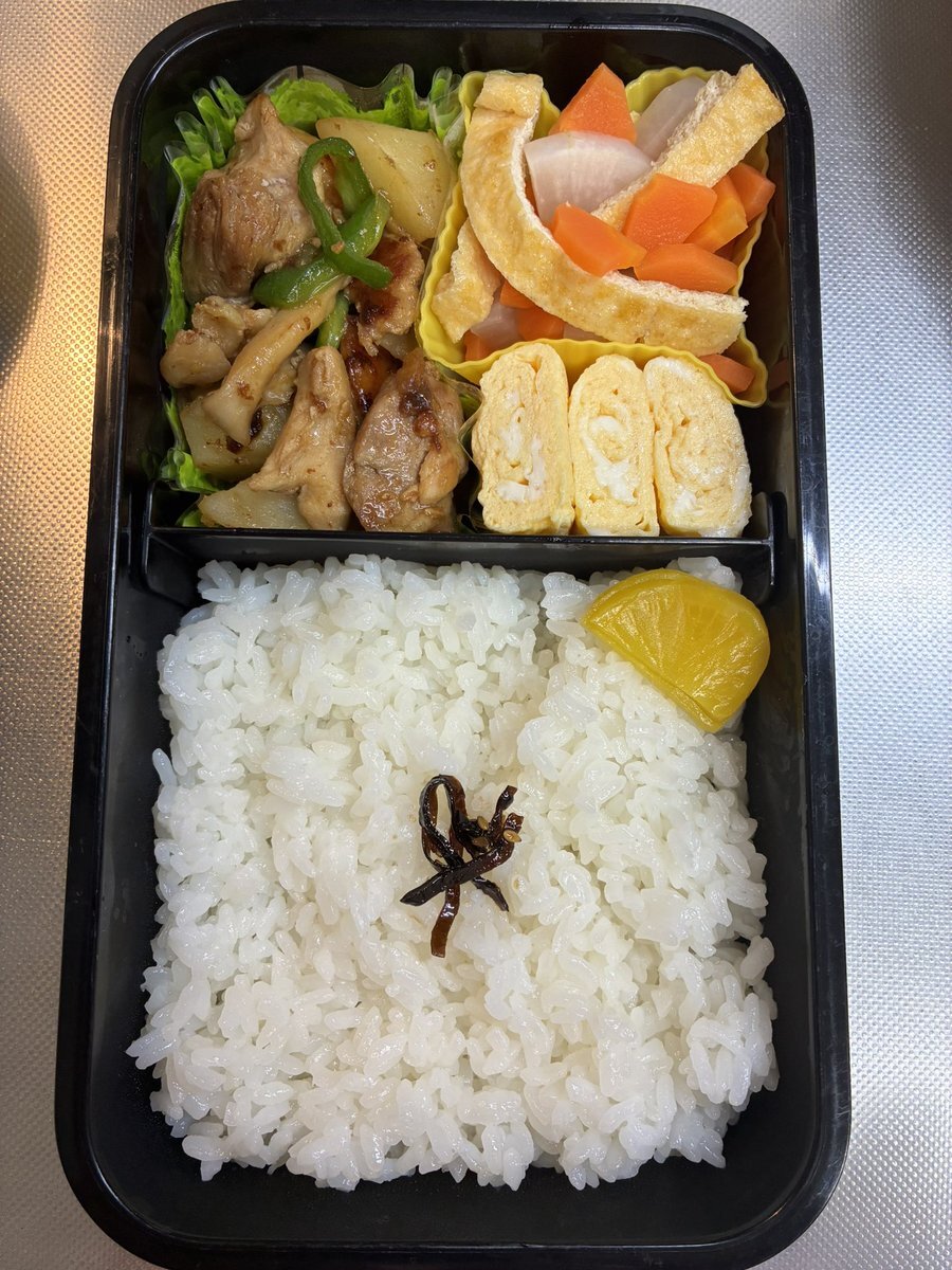 2025.10.31(金) 262個目 鶏もも肉と野菜の照り焼き炒め 大根と人参と薄揚げの白だし煮 卵焼き #高校生男子お弁当 #お弁当記録 #タイガース負けた😭 pic.x.com/f8bi9jPzpP