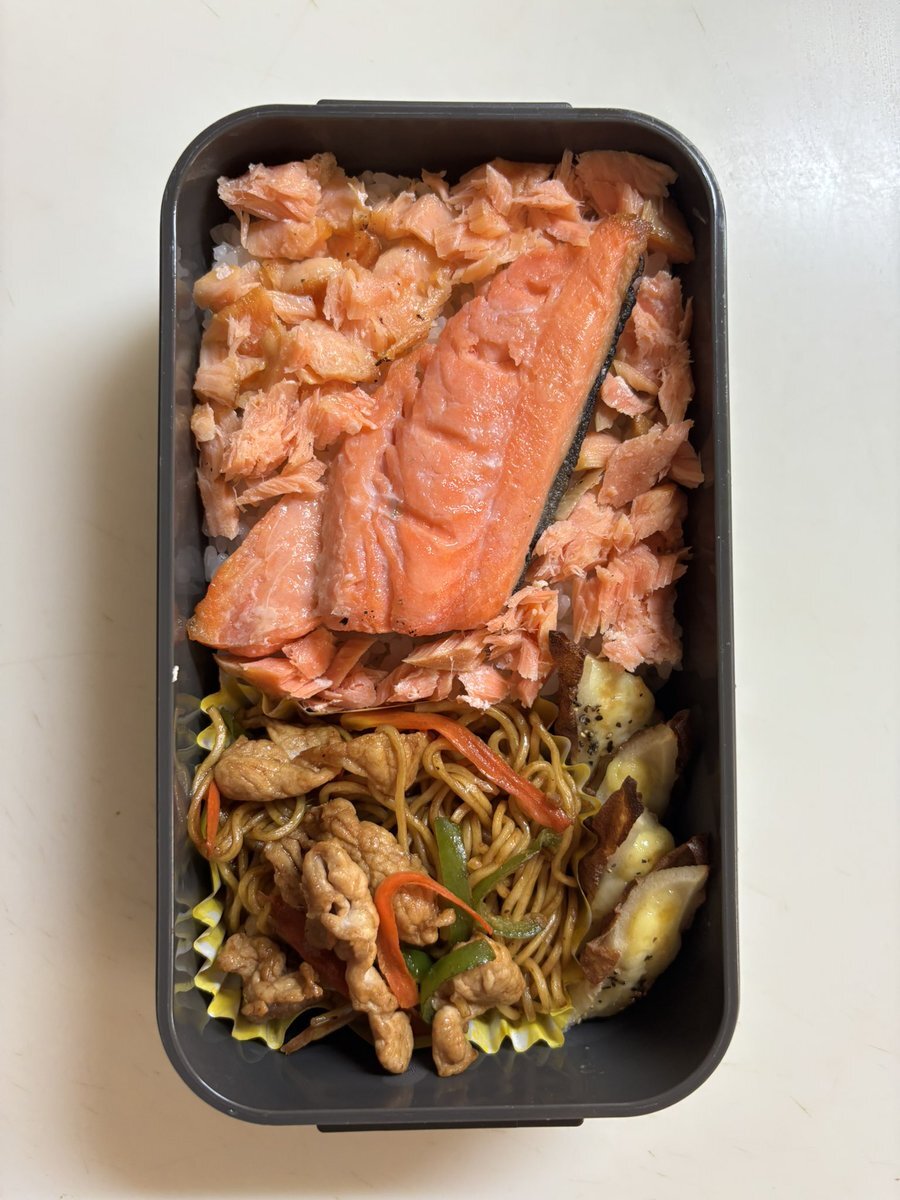 今日のお弁当(89回目)はシャケ弁当です🐟猫様は爪のお手入れ中😉 #お弁当記録 #高校生男子弁当 #保護猫を家族に #猫好きさんと繋がりたい pic.x.com/ra1a7ukRZy