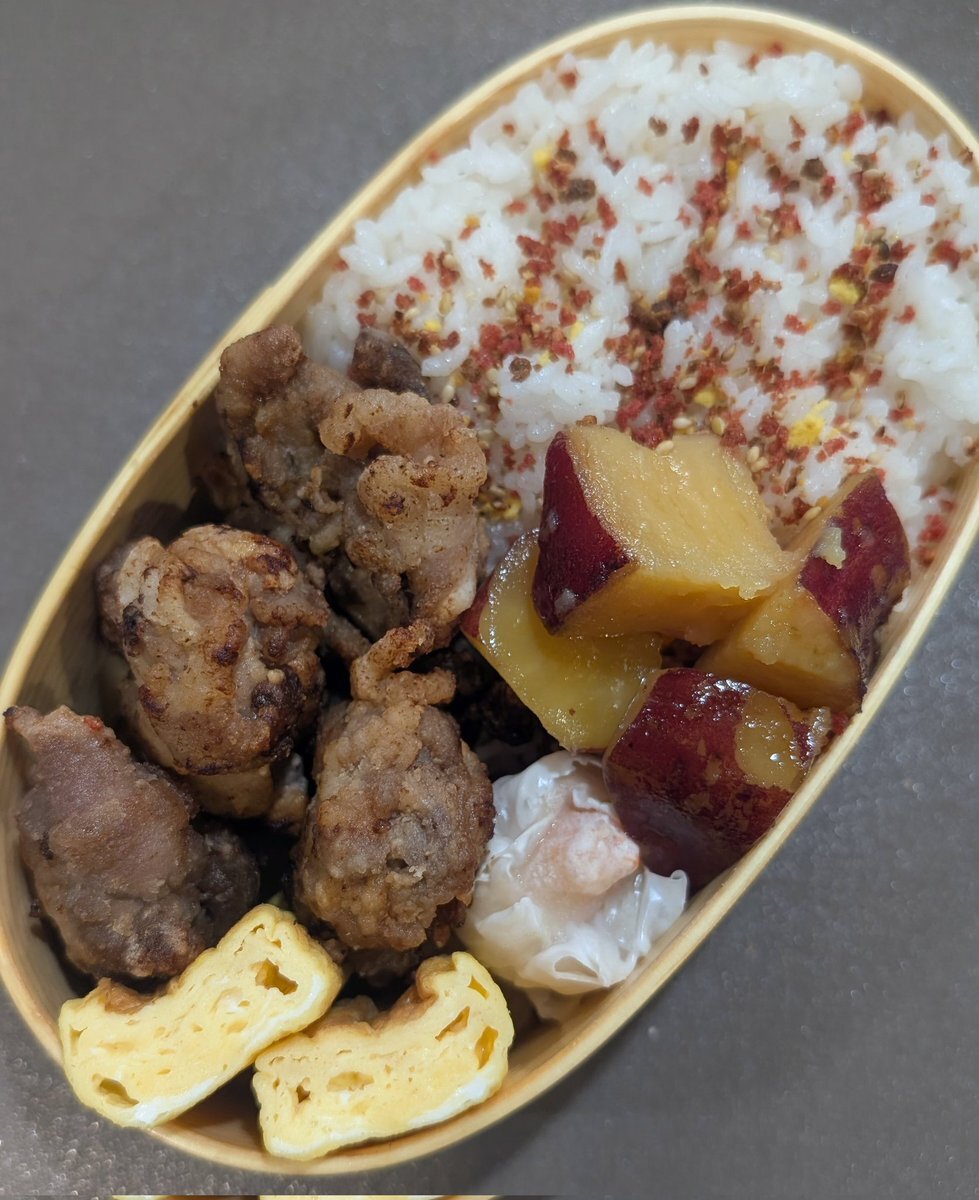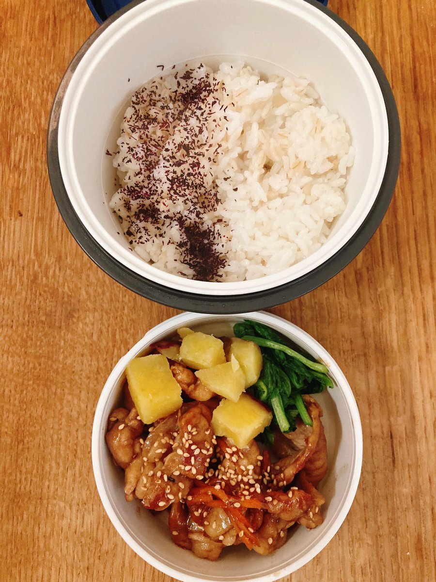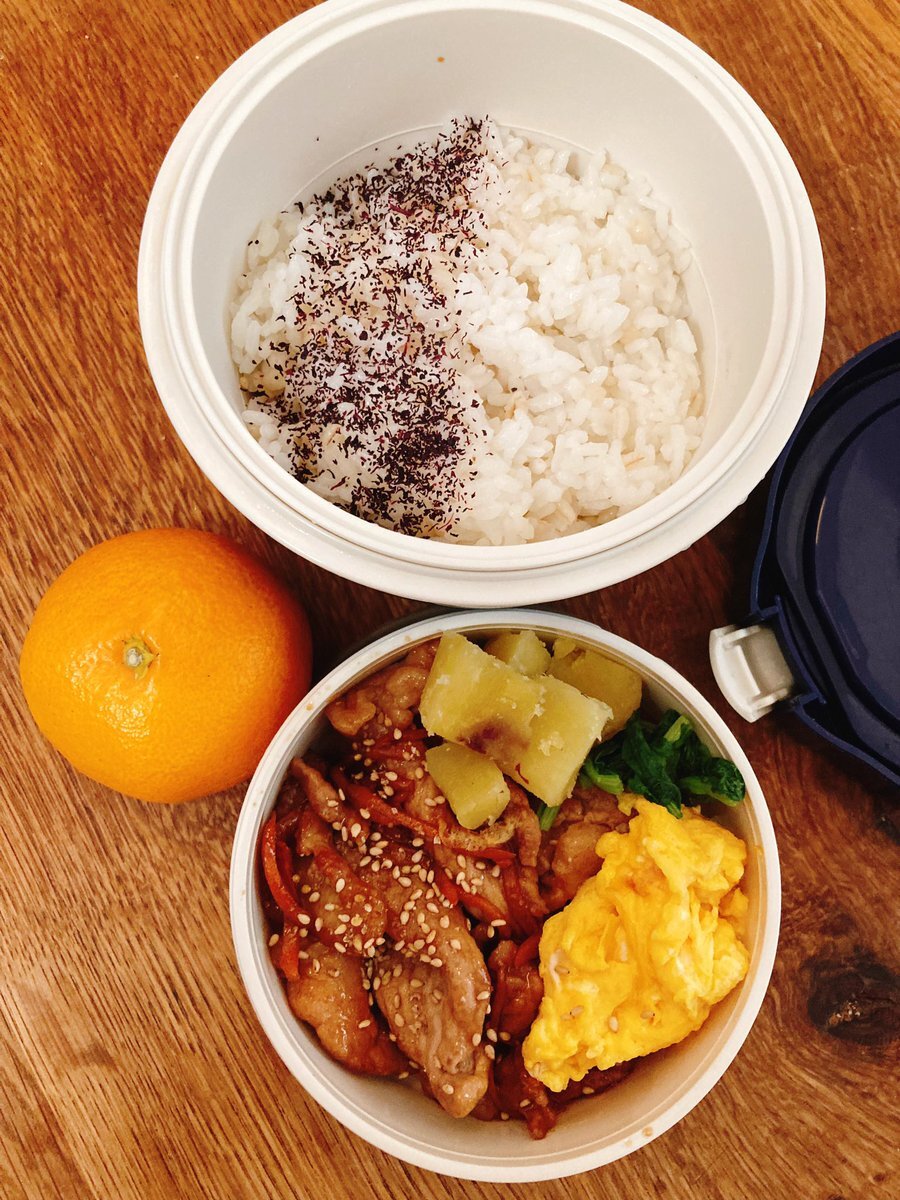 さぁ今週もなんとか乗り切ろう… 豚こま肉を甘酢だれにからめたやーつ。 豚こま肉/サツマイモ/小松菜/ ミカン (長男分だけ卵) #お弁当記録 #お弁当 #高校生男子弁当 #lunch #obento pic.x.com/irCGMNPbMf