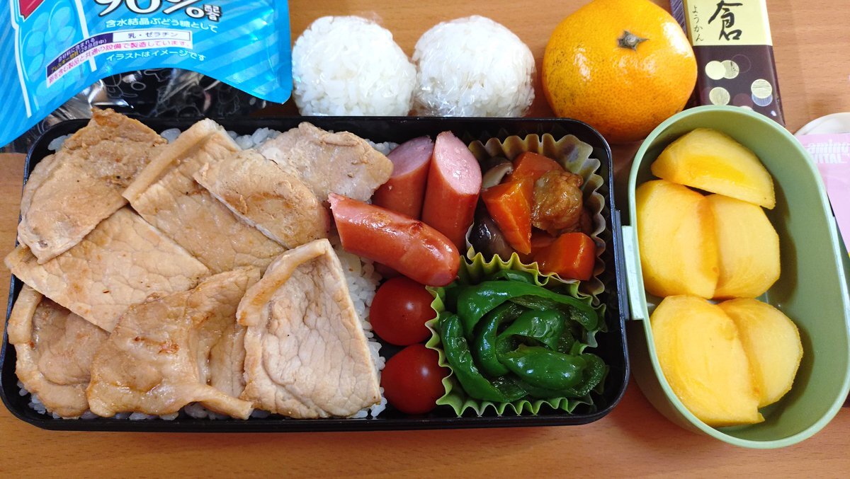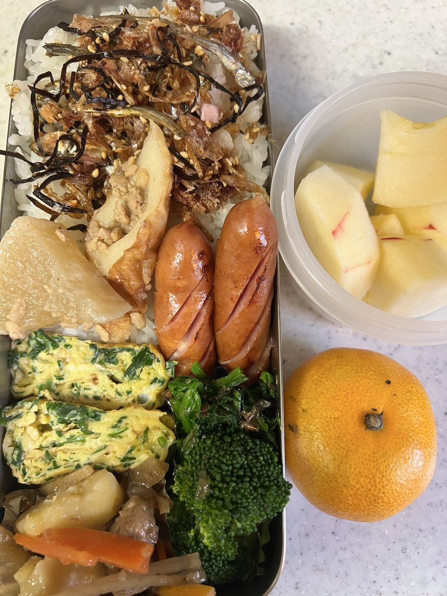 今週のお弁当🍱と 今日のおにぎり🍙 あと、シナノゴールド届いた🍎 やっぱり一番好きなりんご😋 今年は豊作だそうです 追加注文しようかな🙄 #高校生男子弁当 #お弁当記録 #OnigiriAction #太陽農場 pic.x.com/VzRf6XLJTR