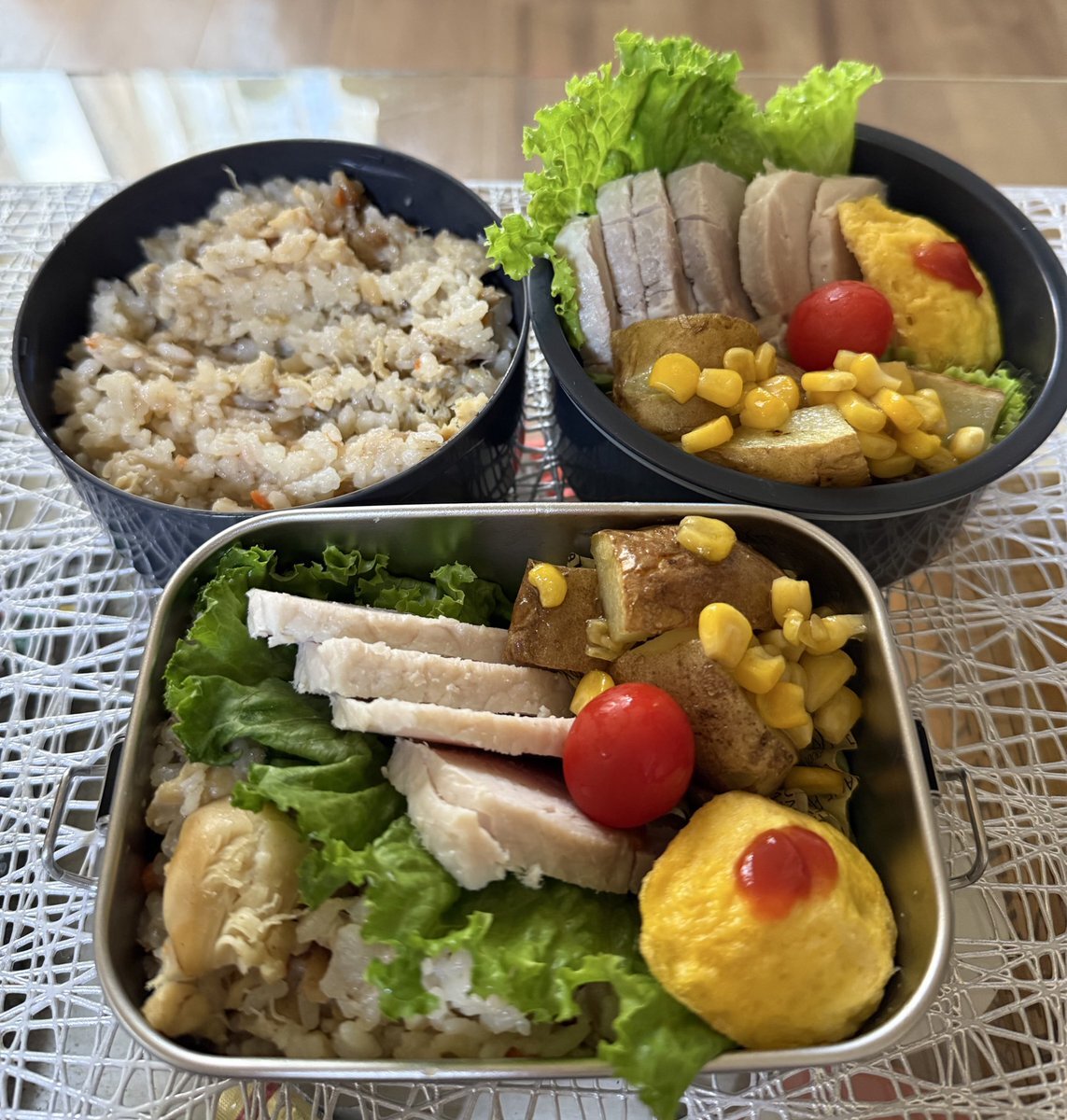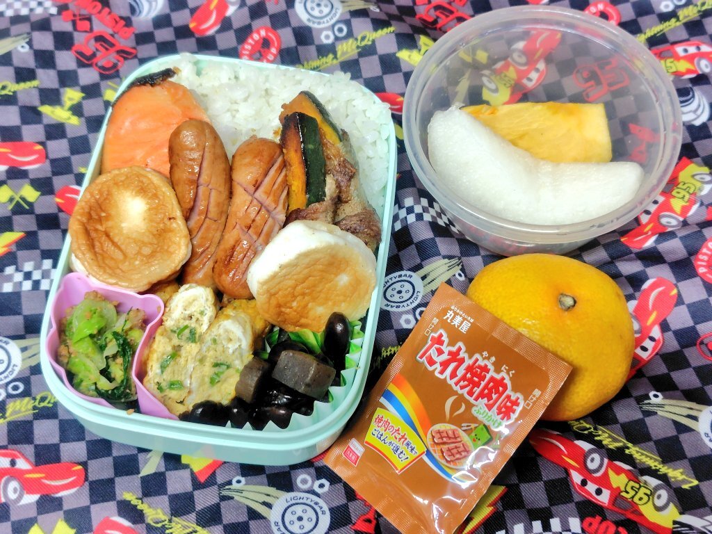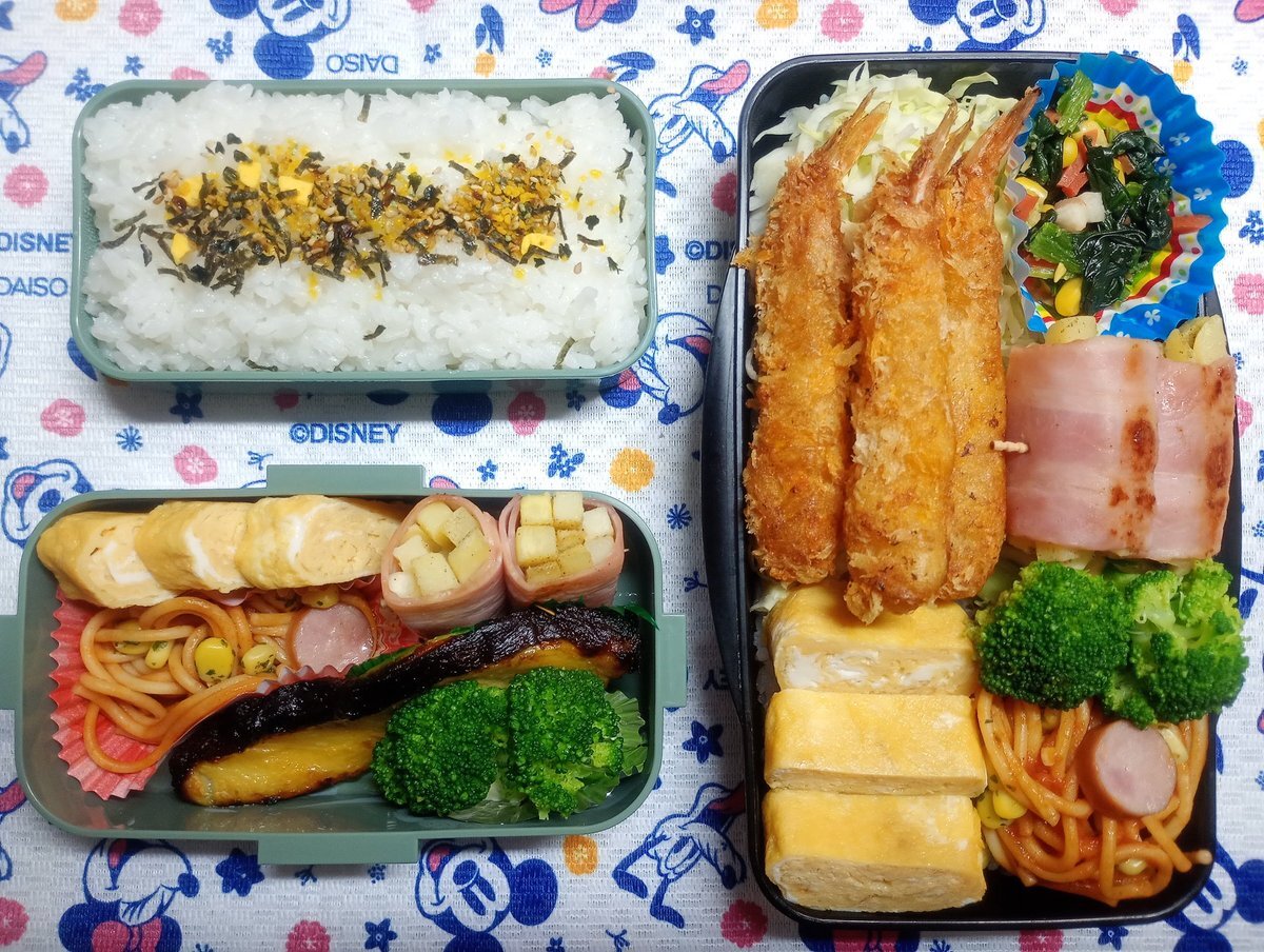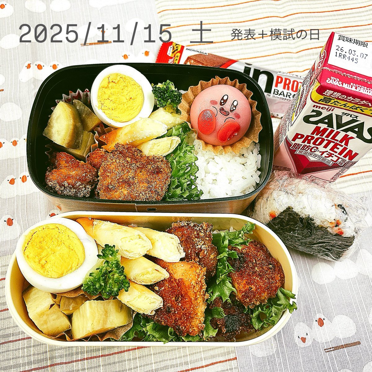 土曜日の高校生と夫のお弁当です🔆 グリルで揚げない唐揚げをしてみました (^-^) #お弁当記録 #高校生男子弁当 #カービィかわいい pic.x.com/2480RY8EJB