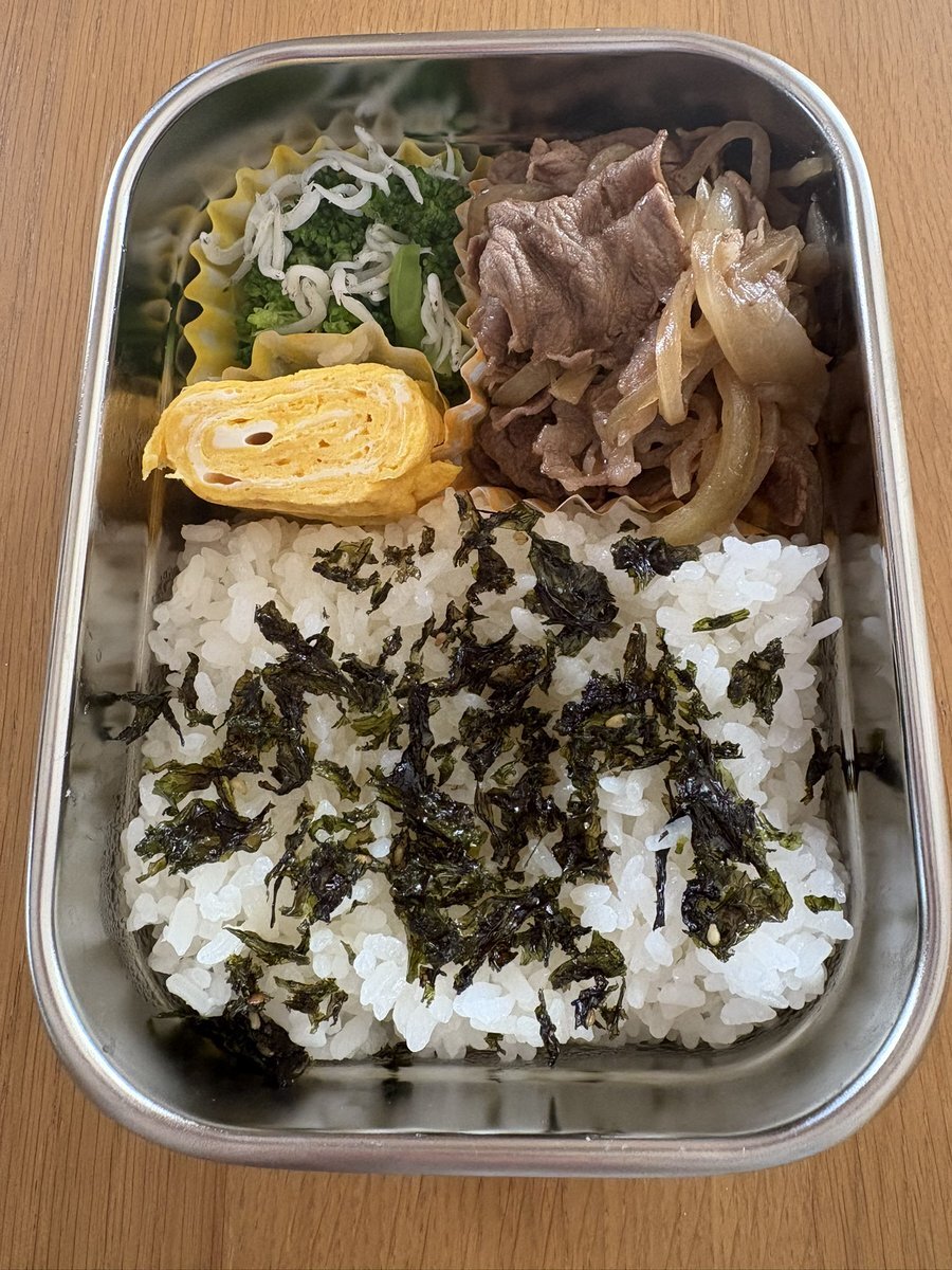 土曜もやっぱりお弁当😌どのみちお昼作るならお弁当を作って、夕方まで自由を手に入れた方がいい🗽 牛丼にせずセパレートで。卵1個🥚玉子焼きパン片側で作った玉子焼き。 #高校生弁当 #塾弁当 #お弁当記録 #高校生男子弁当 pic.x.com/9wny9QwDYZ