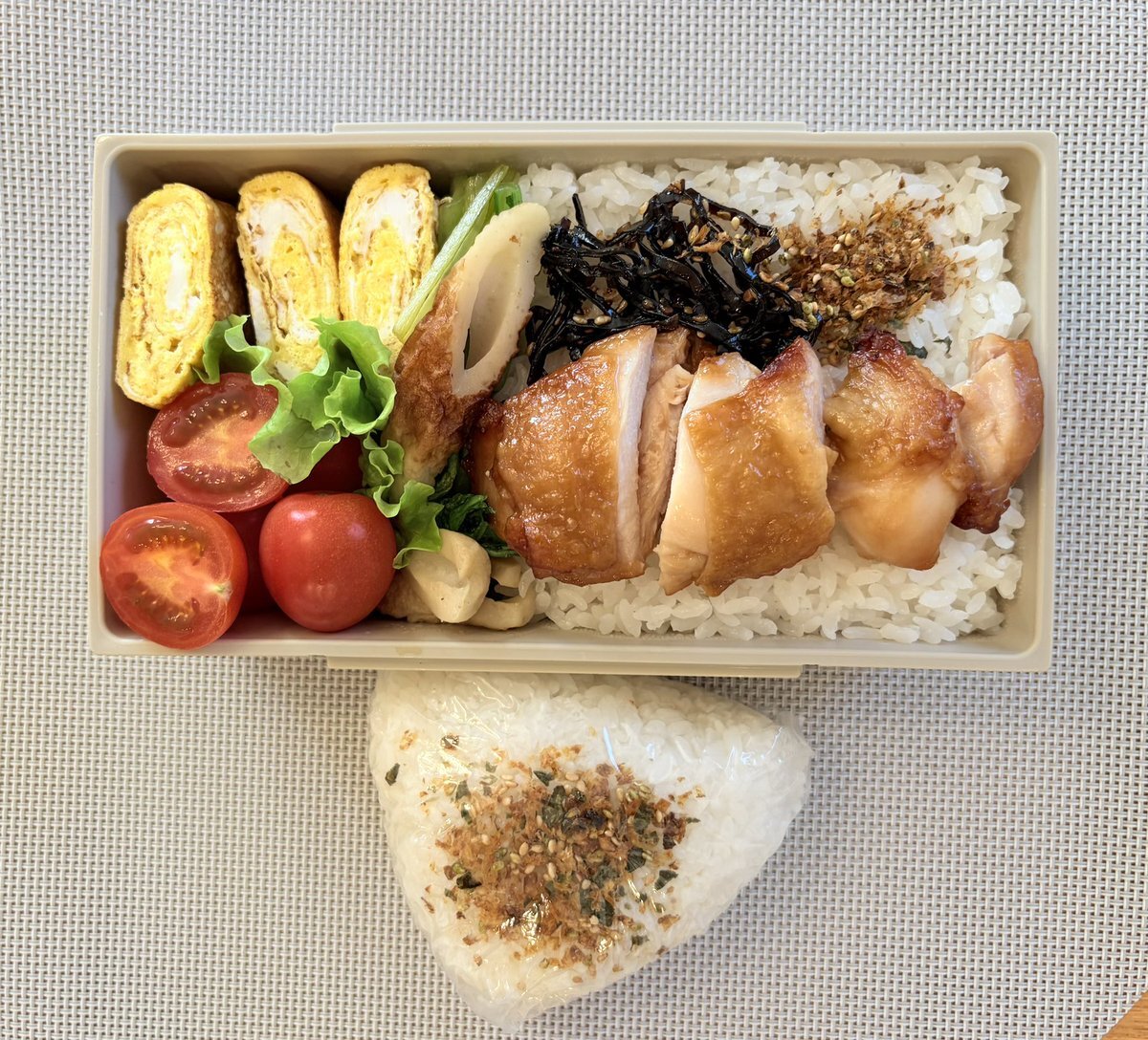 おはようございます。息子が 早く行って勉強すると言い出して(自分も寝坊したくせに) バタバタと作りました。 鶏もも照り焼き 卵焼き その他 ノー緑デー😅 #高校生男子弁当 #お弁当記録 #お弁当作り pic.x.com/UepdwnhNoW