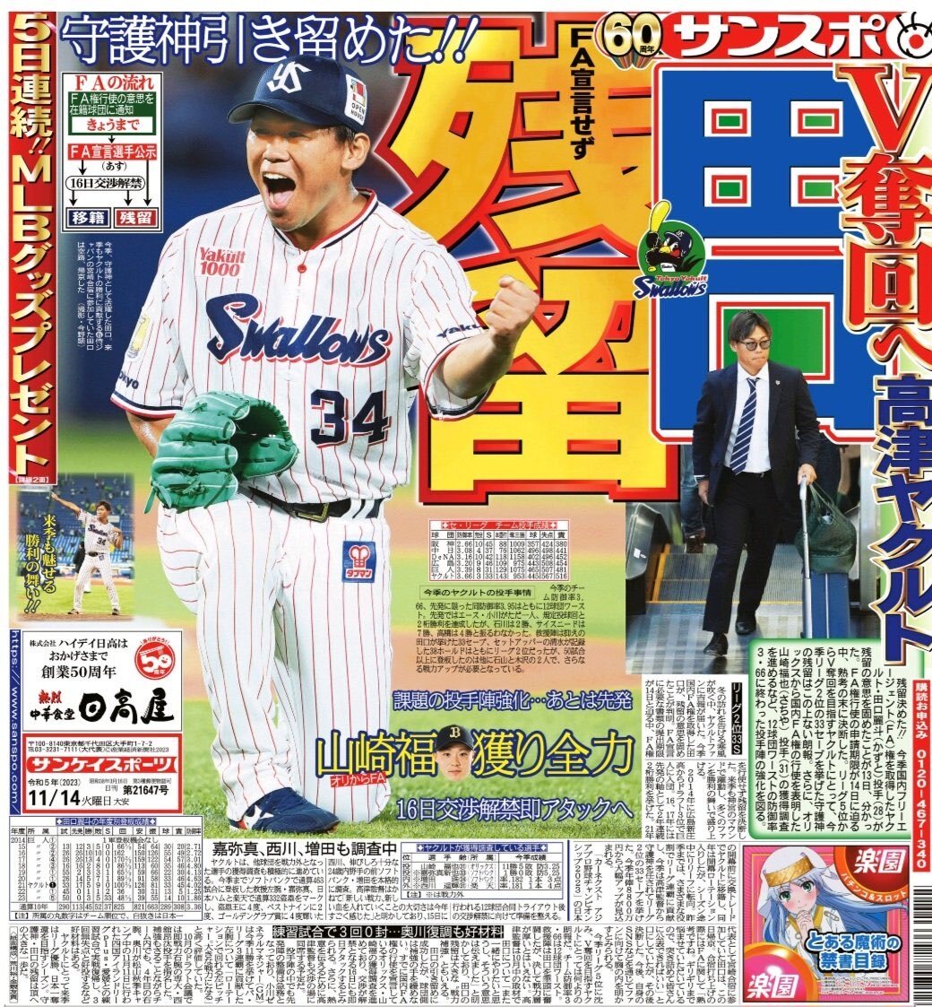 やっとサンスポさんから出た。。「ヤクルトが大好きなので」😭😭😭ありがとうありがとう!!池山監督からも嬉しいお言葉あったしホント嬉しい。。 …あとは「14」なにとぞ🙏🙏 #高梨裕稔 x.com/sanspo_swallow…
