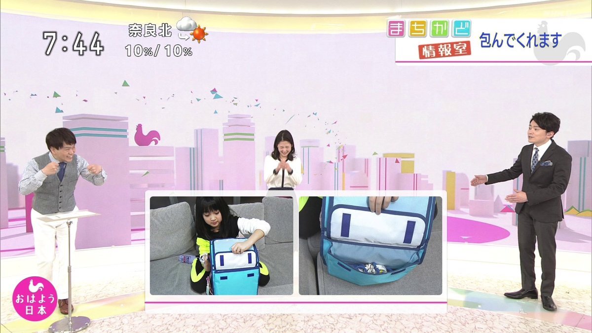 まちかどで紹介されたランドセルを包んでくれる雨具を見て、すかさずボケる高瀬アナ 「獅子舞みたいになって、もう一人ぐらい入れてあげられそう」 #おはよう日本 #まちかど情報室 #高瀬耕造 #桑子真帆 #吉田浩 pic.x.com/9sEMnX3OOT