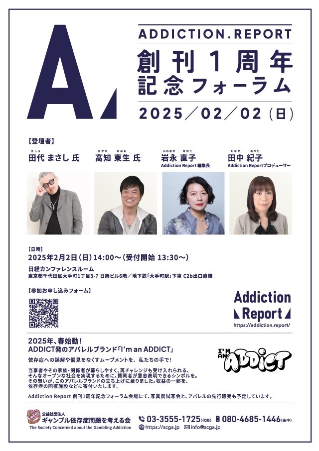Addiction Report 1周年記念フォーラム。 田代まさしさん、高知東生さんの掛け合いが楽しかった。お二人の正直なお話から、依存症報道の異常さに驚きました。 依存症からの回復を応援できる世の中であってほしい。 素敵なアパレルグッズもゲットできました。 #田代まさし #高知東生 pic.x.com/RDFBZBuN0J