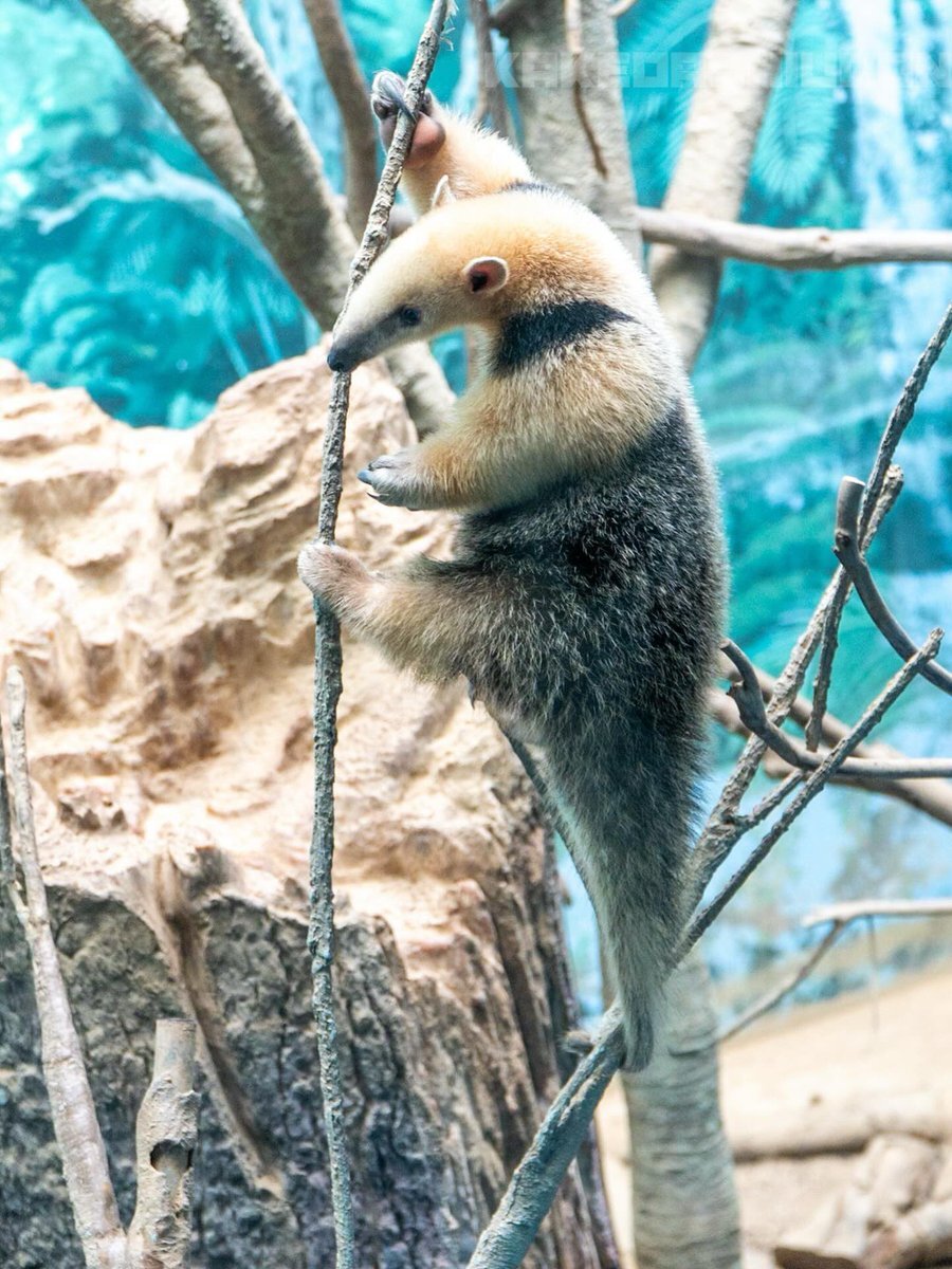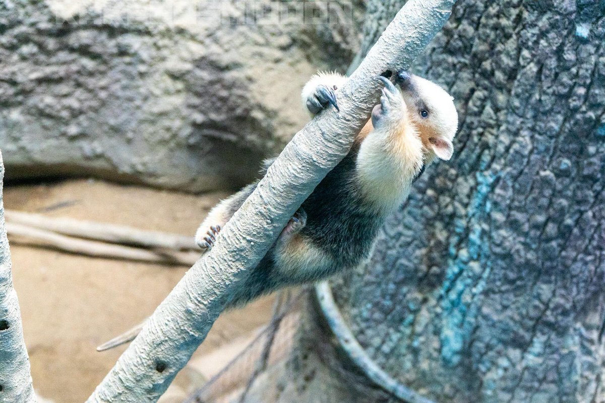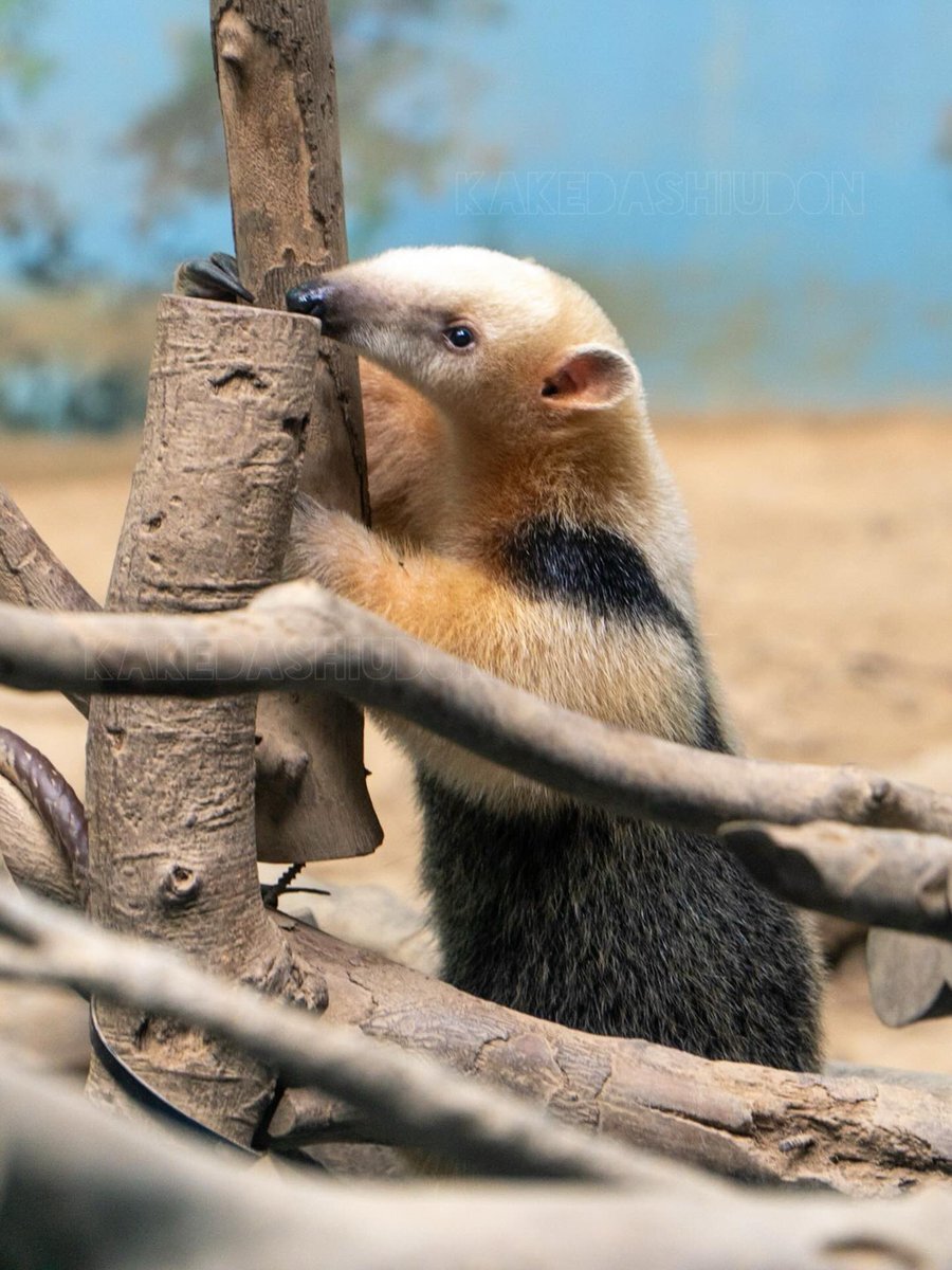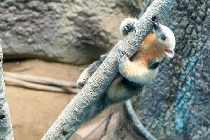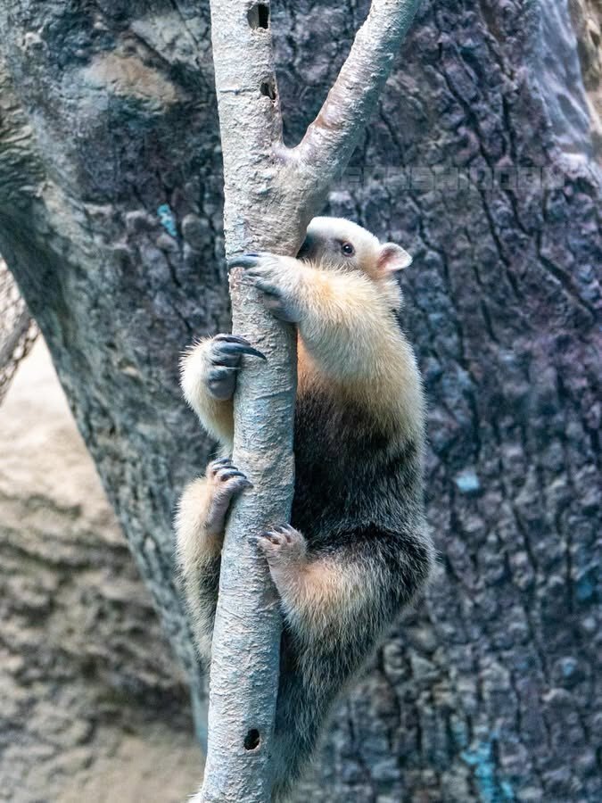 お客さんから「大丈夫〜?」とか「落ちちゃうよ〜!」とか心配されてましたが、軽々木をよじ登ってくミナミコアリクイのあかちゃんでした 📷20251012 #高知県立のいち動物公園 #ミナミコアリクイ pic.x.com/YZHRoEh2VI