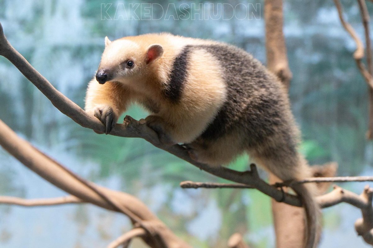 細い木の上でバランスを取る、つぶらな瞳のちまい生き物 📷20251012 #高知県立のいち動物公園 #ミナミコアリクイ pic.x.com/Dmuea7BaGT