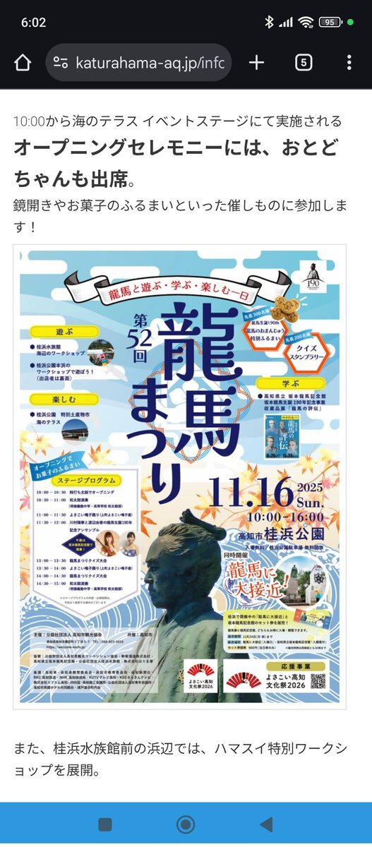 #高知ユナイテッドSC 🆚 #ヴァンラーレ八戸 15日(土)#桂浜 #高知県立坂本龍馬記念館 入館無料 帯屋町商店街や中央公園で #龍馬生誕祭 よさこい演舞も有り 16日(日)は桂浜で #龍馬まつり 桂浜で「#龍馬に大接近」開催中 #龍馬パスポート スタンプ押印特典対象 詳しくは kochi-tabi.jp/ryoma-pass/ pic.x.com/A8a9AnWcAD x.com/kochi_United/s…