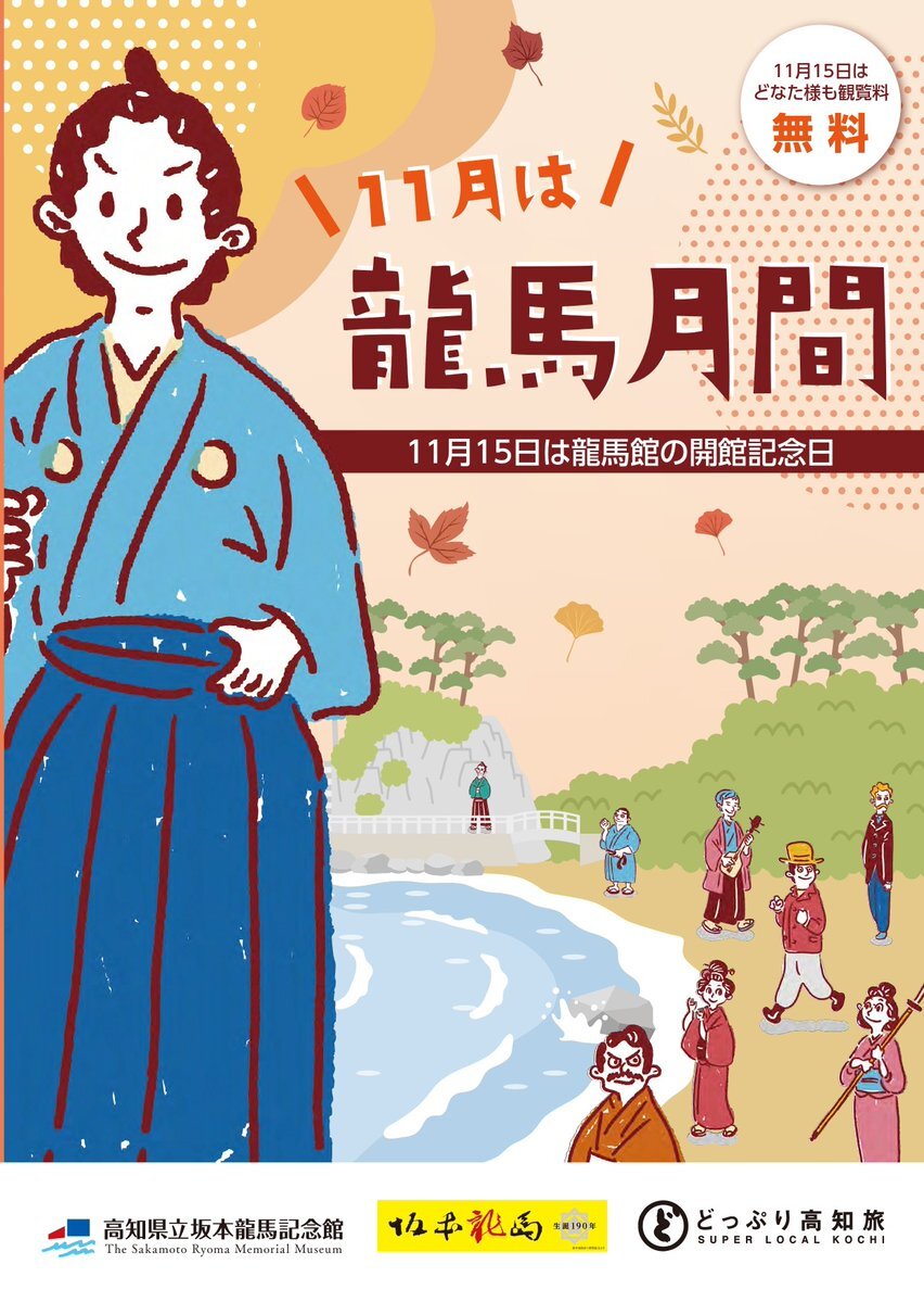 11月は「龍馬月間」✨ 毎日楽しめる謎解きクイズや「隠れ龍馬を探そう!」に加えて、土・日・祝日は学芸員による展示解説や、なりきり龍馬体験を行います😊 そして、11月15日と16日は「龍馬まつりin記念館」を開催します!11月15日の無料開館デーは、どなた様も観覧料が無料です🌸 #坂本龍馬記念館