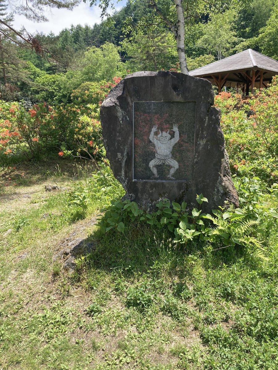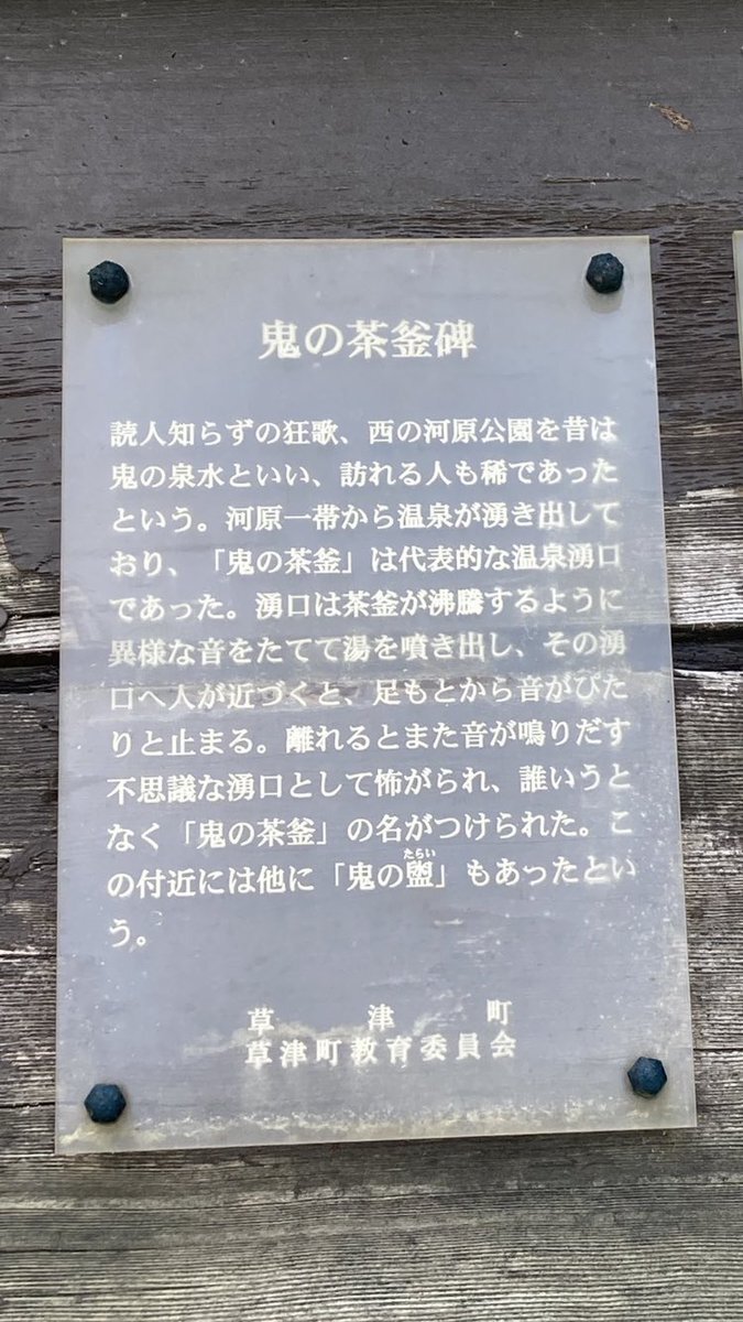 鬼の相撲場。昔、石古根山の鬼たちは遊び場を求めて、地蔵の土地に目を付けた。その際、地蔵は鬼たちに「人に悪さをしない」と約束させると、そこで遊ぶことを許した。鬼の相撲場は石が土俵のように並んでいるという。 #鬼の相撲場 #西の河原公園 #草津温泉 #妖怪 # pic.x.com/UhsH0GPhK4
