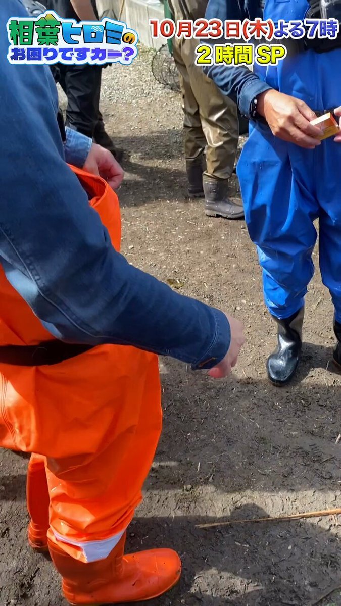 【びしょ濡れになった後のオフシーン】 水草を抜くためにびしょ濡れになったけど 着替えないそうです 濡れるのを想定して 着替え3回分用意してたのに! #ただいま放送中 #池はどう生まれ変わる? #相葉ヒロミ #相葉ヒロミのお困りですカー?