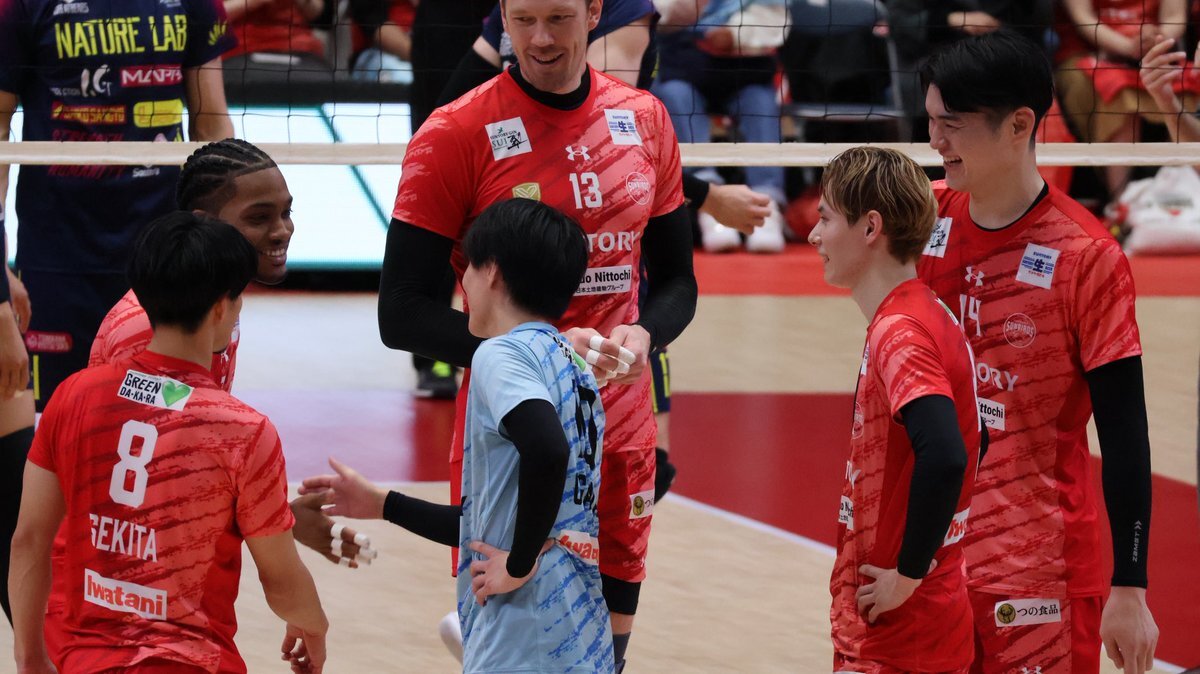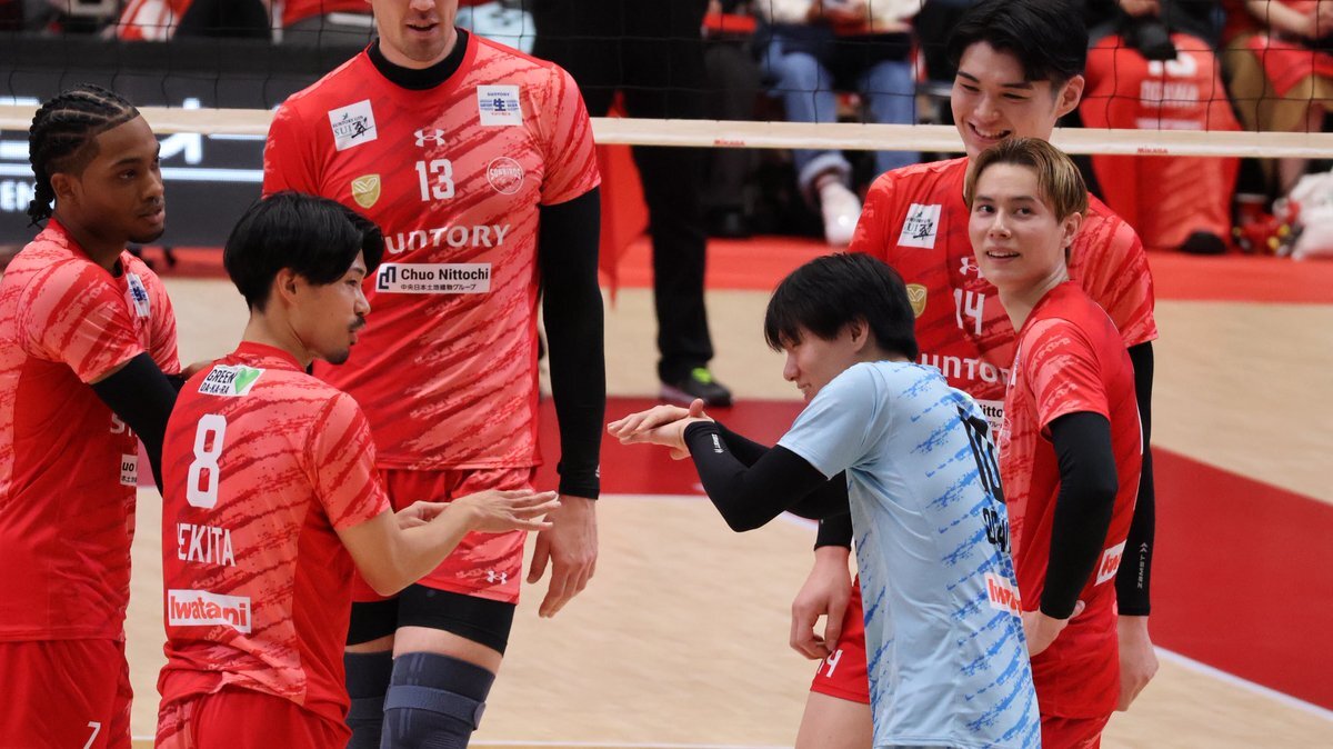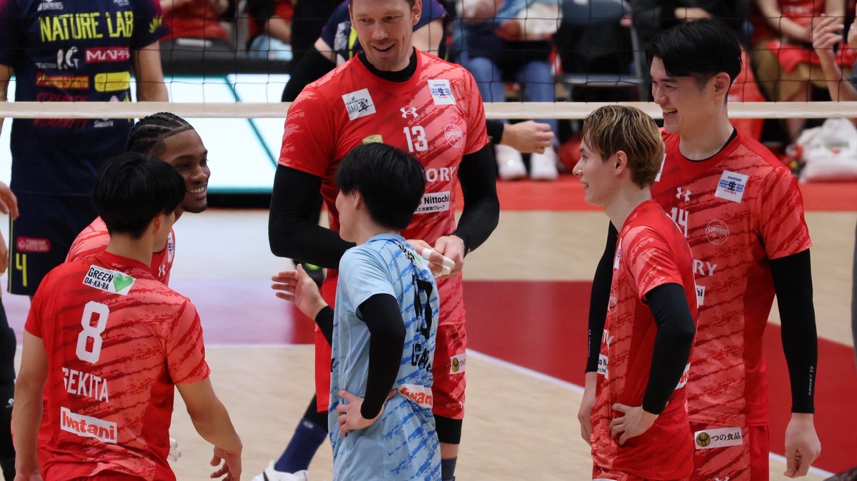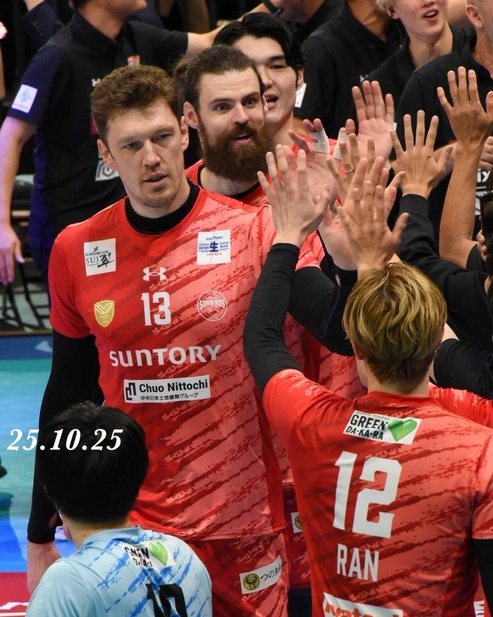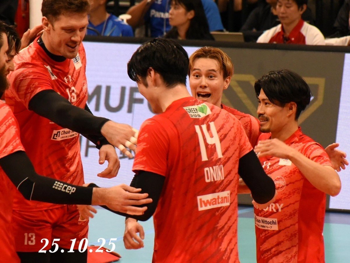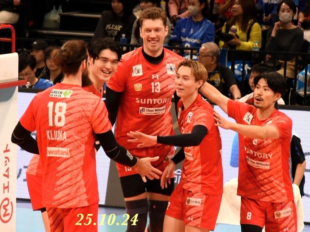 25.10.25 大阪B-サントリー@神戸⚓️✨️ 今季初勝利でハイタッチ(*´∀`)人(´∇`)🏐✨️ #関田誠大 #髙橋藍 #ドミトリー・ムセルスキー #イゴール・クリュカ #鬼木錬 #サントリーサンバーズ大阪 #20251025 pic.x.com/V1WPpXEx8z