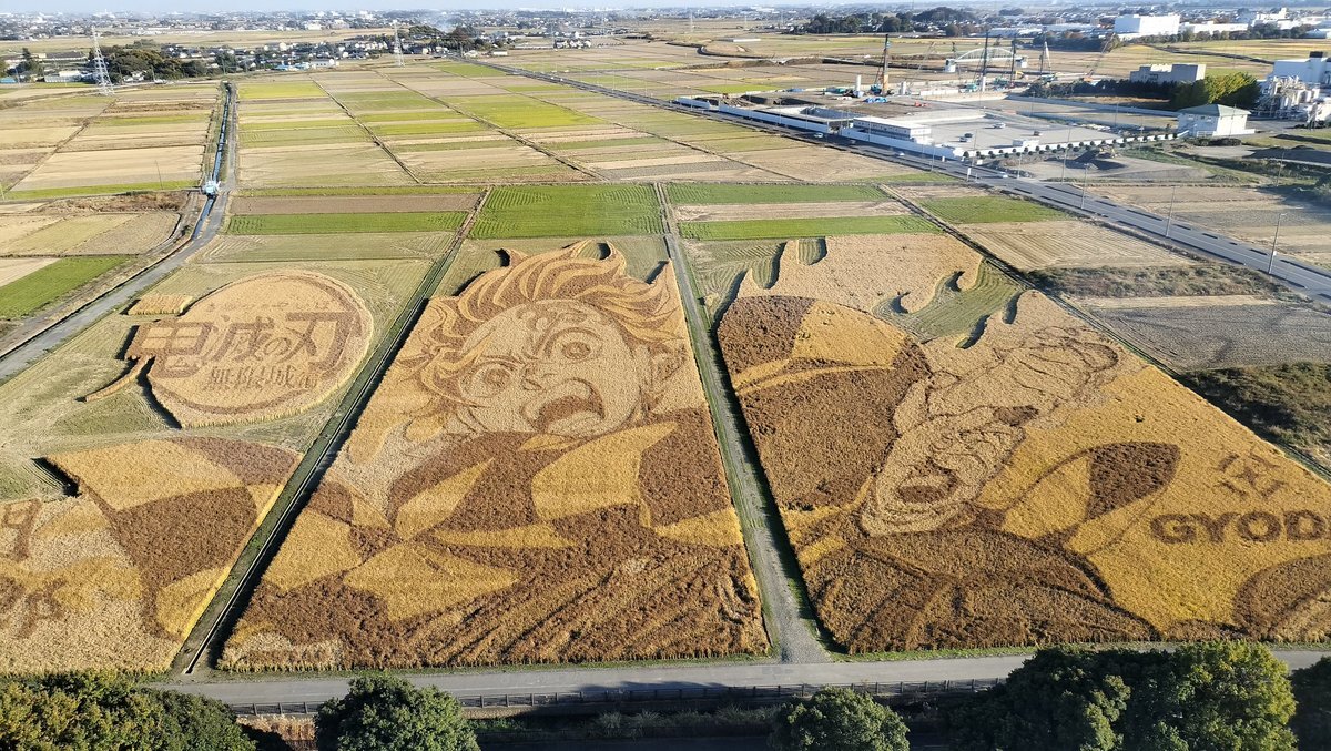 7月~は本当に人が多かったようでしたが、11月になると混雑無しで竈門炭治郎田んぼアートが観ることができた。黄金色も漫画のような感じでいいですね。 #古代蓮の里 #行田タワー #鬼滅の刃 pic.x.com/6D3hGWklWt