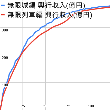 鬼滅の刃無限城編第一章猗窩座再来と無限列車編の興行収入推移(121日目)をグラフにしました。※数値は出典を参考に、一部改変を加えています。 【出典】 ベーダーの興行収入速報 @mtt_75058 映画予報 kenken-movie.com/kimetsu-mugen-… #鬼滅の刃 #無限城編 #鬼滅の刃無限城編第一章猗窩座再来 pic.x.com/e6Q1tVbFlv