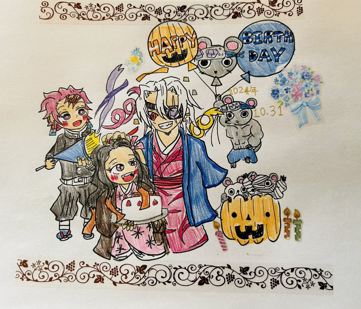 #鬼滅の刃,#鬼滅の刃イラスト,#宇髄天元生誕祭2025,#宇髄天元誕生祭2025,#10月31日は宇髄天元の誕生日,#ハロウィン2025 音柱の宇髄さん,誕生日おめでとうございます‼️ 🎉happy birthday/happy Halloween🎃 ____2025年10/31____ (左→2025年,右→2024年の誕生日イラストです) pic.x.com/eRActICAyY