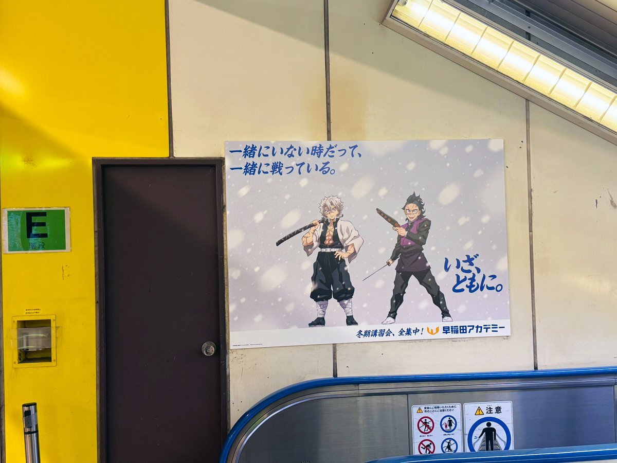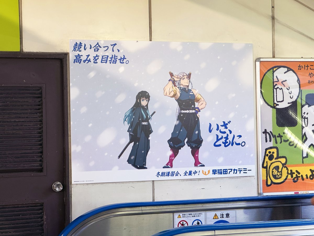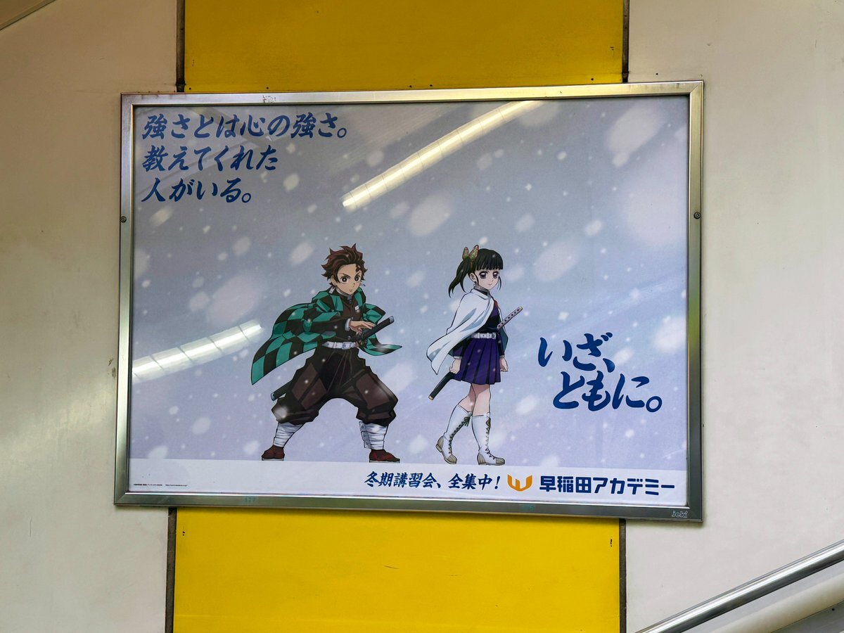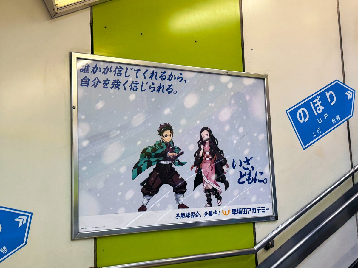 「#鬼滅の刃」×早稲田アカデミー冬期講習会の広告はJR東日本 新宿駅南口階段側面にも掲出されていました🎴 様々なペアがいるので、探したくなります👀 #鬼滅の刃x早稲アカ冬期 過去の事例はこちら▼ x.com/sogohodopopeye… x.com/WASEDA_ACADEMY… pic.x.com/T590a5Uy4z
