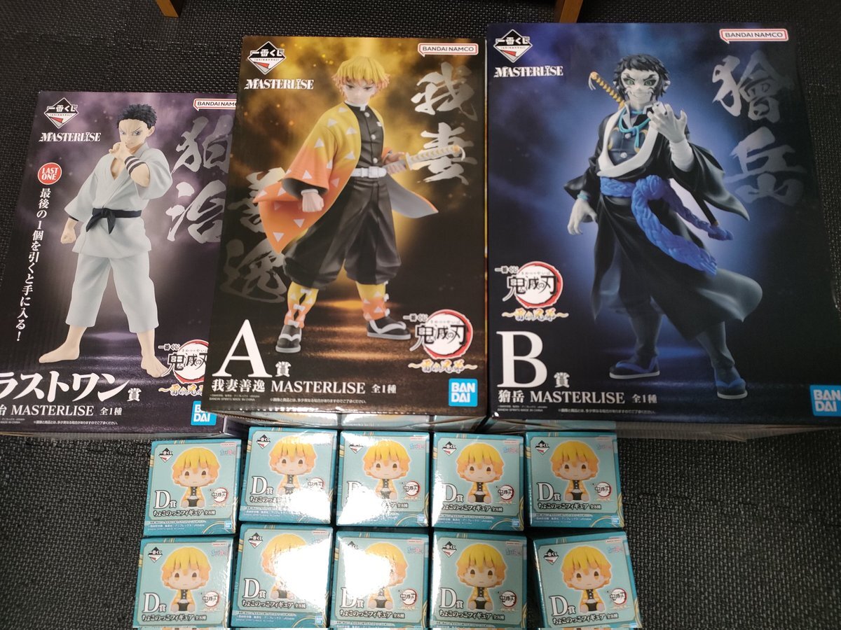 引いてきました! 1店舗目で息子と10回‼️ ちょこのっこ3個当たった✩°。⋆⸜(* ॑꒳ ॑* )⸝ 残り27でフィギュア無傷。再挑戦しようとしたら、次の人全買いඉ_ඉ 泣く泣く次の店舗へ。 ちょこのっこが7個残り、ABあり。迷ったけど残り34全買いしてきました。 後悔は無し‼️ #一番くじ鬼滅の刃 #鬼滅の刃