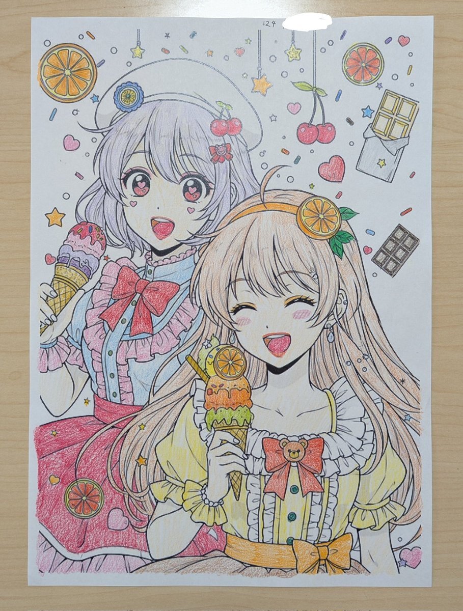 #塗り絵 #魔法のアトリエ@Ranko_Kanzaki__) 魔法のアトリエ塗り絵集(第1巻)より塗らせて頂きました。 4枚で髪色を変えて楽しく塗らせて頂きありがとうございましたm(_ _)m✐。 pic.x.com/mXWLPUXdDj
