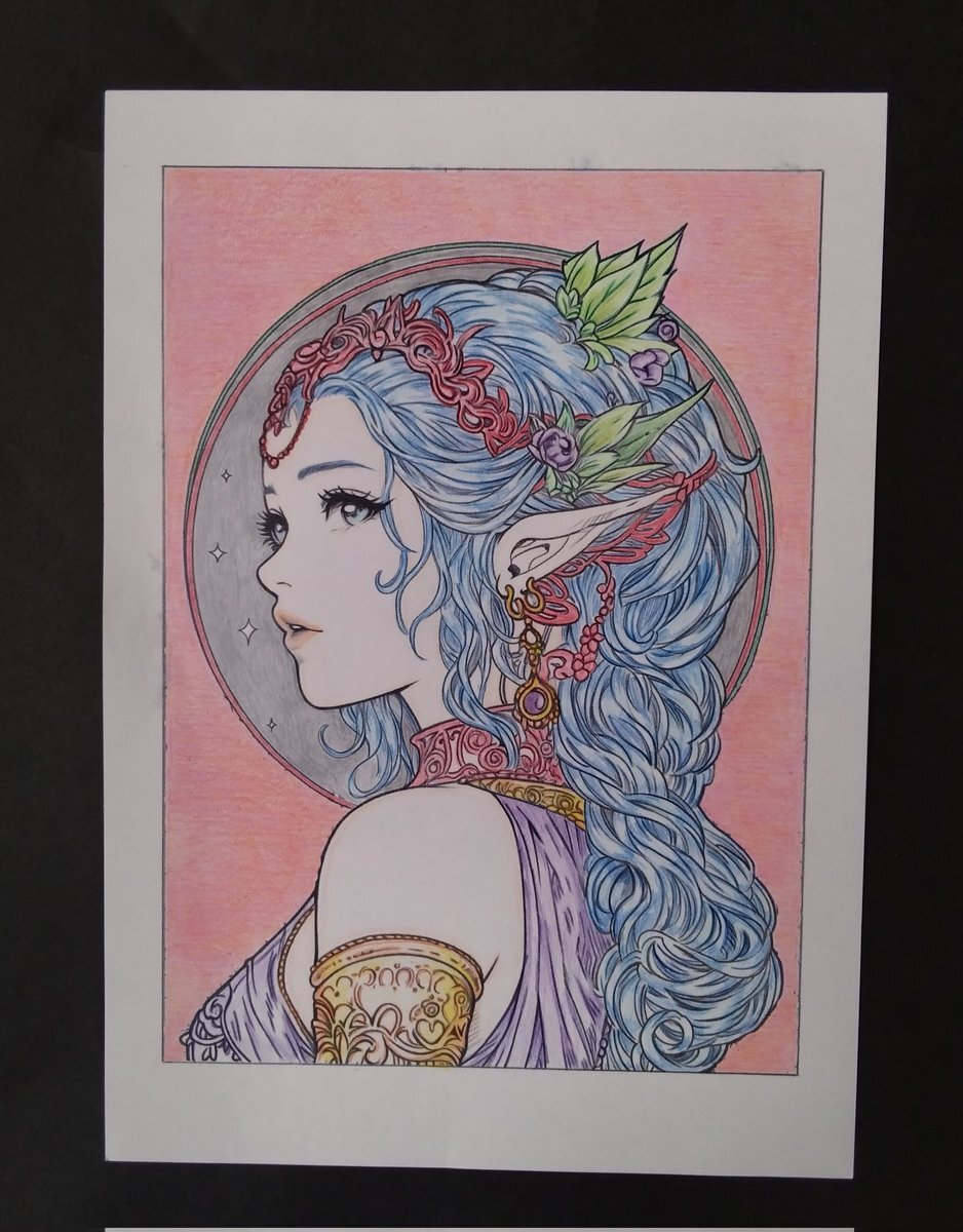 #塗り絵 #魔法のアトリエ@Ranko_Kanzaki__)さんの線画完成! ※塗り絵集(第1巻)二枚目を塗らせて頂きました。ありがとうございますm(_ _)m✎。 pic.x.com/AbKhH611ym