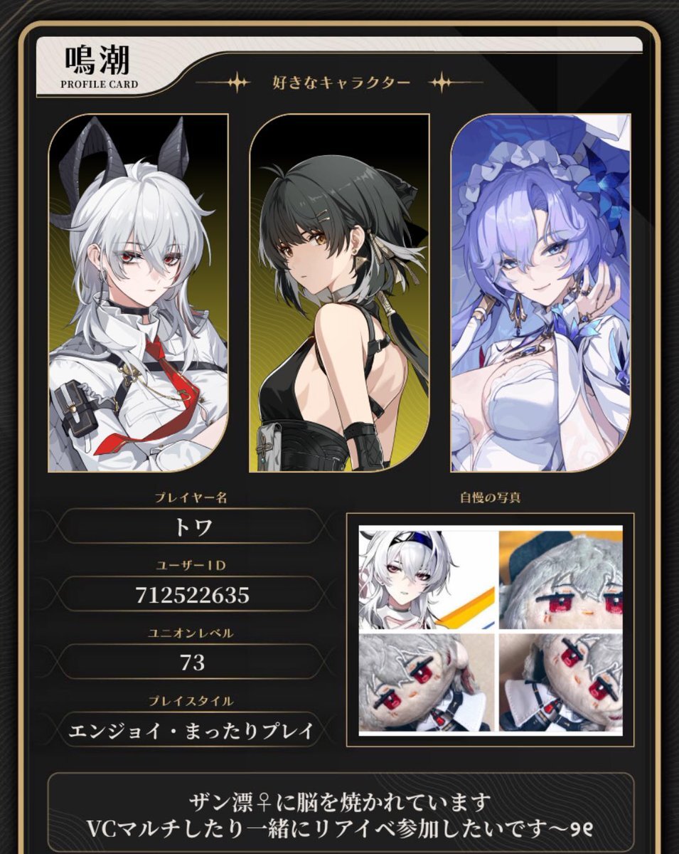 おそらくこのアカウント動かした時以来の更新です!🙇‍♂️ キャラ3人に絞れなかった😂 絵描きに限らず気になった方をお迎えに行きます🙏(片思い3日まで) #鳴潮自己紹介カード #鳴潮絵描きさんと繋がりたい pic.x.com/2ujRDY7dVG