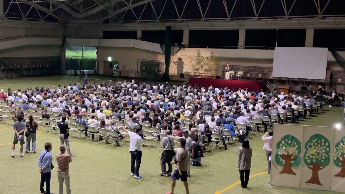 千葉県鴨川市・市民主催のメガソーラー説明会なう。屋内競技場のアリーナにこんなにたくさん市民が集まるなんて。熱海で生じた土砂災害のような被害をなんとかして阻止したい気持ちの表れかと x.com/kamogawa_mamor…