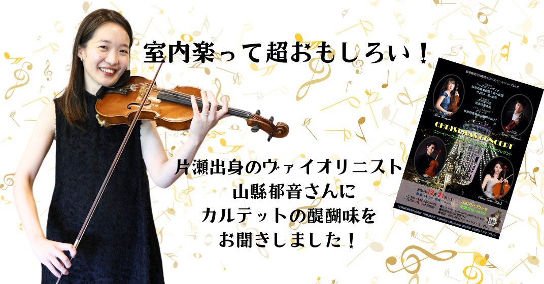 【室内楽って超おもしろい!片瀬出身のヴァイオリニスト 山縣郁音さんにカルテットの醍醐味をお聞きしました!】 12月21日(日)に開催、弦楽四重奏団のクリスマスコンサートについてお話をお伺いしました。室内楽ので面白さをディープに語っていただきました。 fujisawabito.net/report/652/