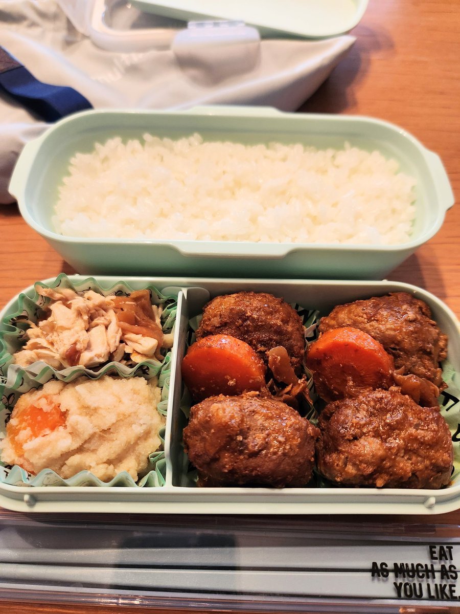【お弁当1日目】今日から3日間、娘の中学校の給食が無いのでお弁当を持って行きます✨️ お弁当が大好きな娘は大喜びでメニューを考えて、そのリクエスト通りに私が作りました😁 #お弁当 #中学生 #運動会 #煮込みハンバーグ #卯の花 #鶏ささみの梅ぽん酢和え pic.x.com/TQWT7eXvqn