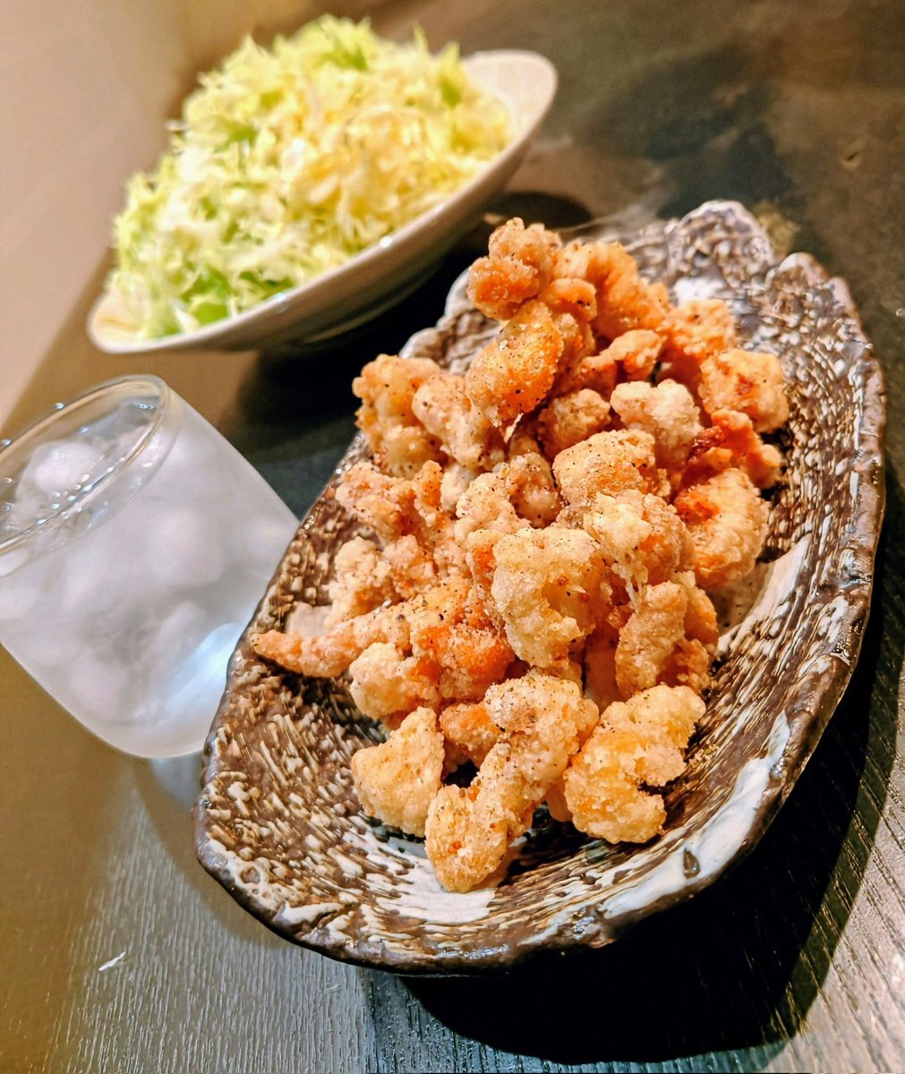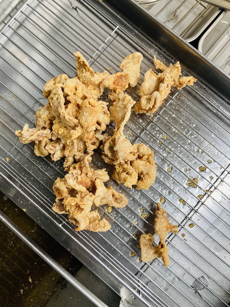 お疲れさまです! 鶏皮カリカリ唐揚げ✨ にんにくポン酢でいただく! 乾杯🍻デス! #鶏皮唐揚げ pic.x.com/DHaQ8aVg8M