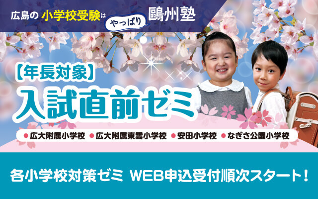 鷗州塾幼児部です! 🏫学校別🏫の年長対象「入試直前ゼミ」を大好評受付中✨来月から、広大附属小・東雲小の申込受付もスタートします📢 志望校合格を目指し、ぜひ鷗州塾幼児部で最後の総仕上げをしましょう🎵 oshu-juku.jp/info/youji_cho… #鷗州塾 #広大附属小 #広大附属東雲小 #安田小 #なぎさ公園小 pic.x.com/nemTB6MXOW