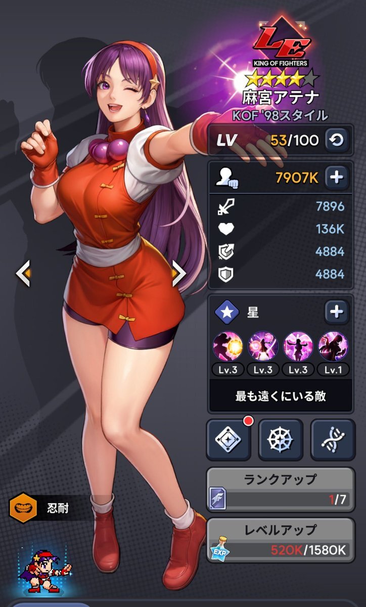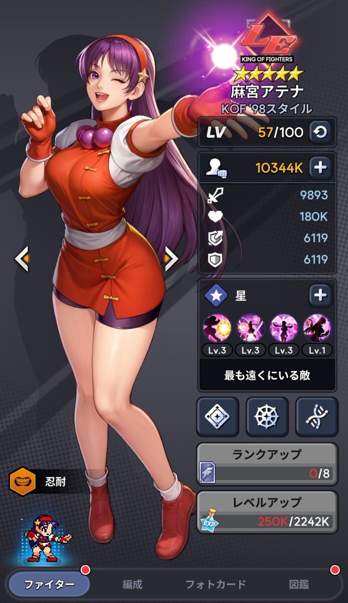 貯めてたルビーを排出して、なんとか星4とちょいまで来ました‼️ 経験値が足りなくて参戦はまだまだですが💦 これからもアテナ育成、バトルを頑張ります💪 #KOFドットバトル #麻宮アテナ参戦 x.com/CrightChristin…