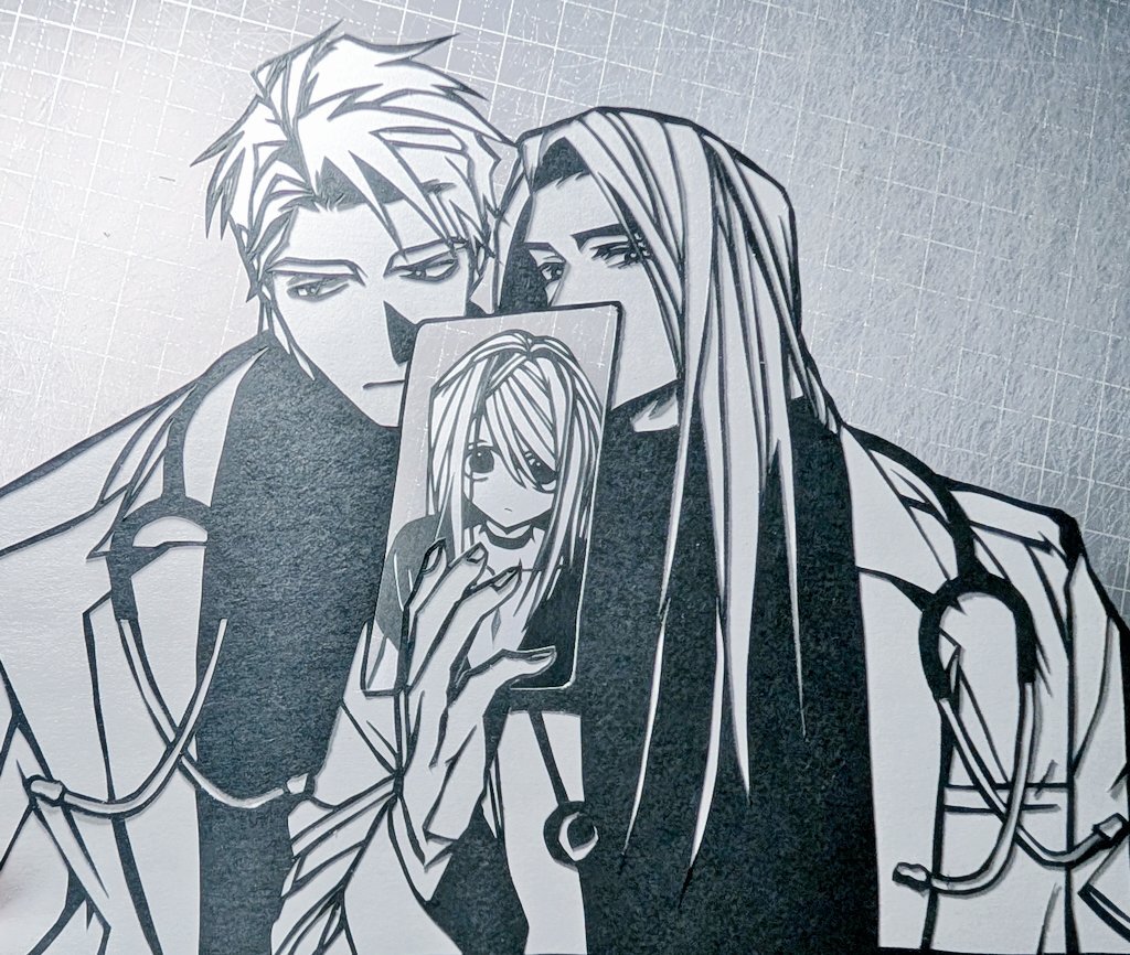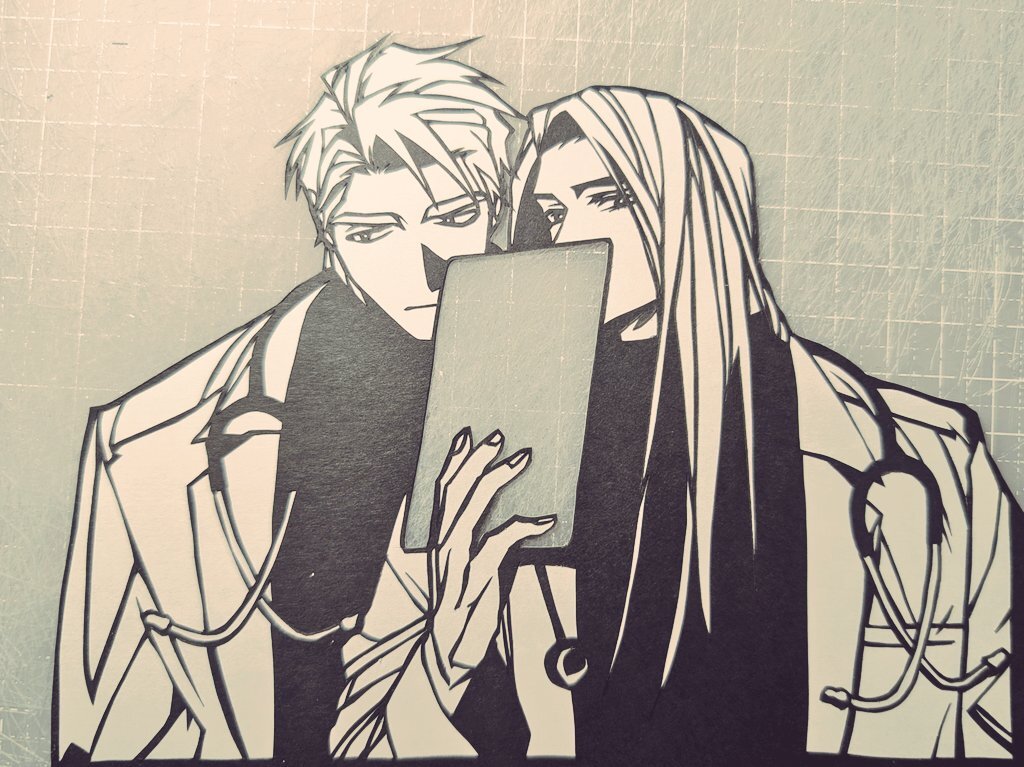 ドクター二人が本当に大好きでずっと妄想したり原作読み返したりしてます。 バインダーの部分に好きなものを写し込んで撮影して遊べます。 顔と髪の毛見てほしい。九研さんの絵が本当に大好きです。 #麻生先生に絶対依存しない #切り絵 pic.x.com/LZcBItwxVv