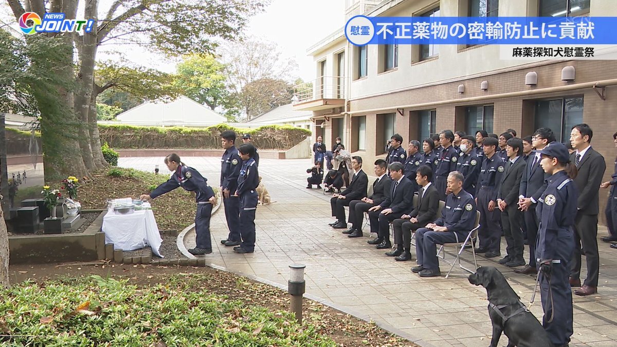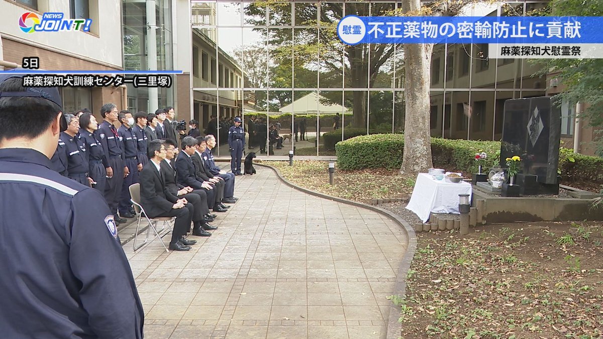 「麻薬探知犬慰霊祭」 不正薬物などの密輸を防ぐために活動する #麻薬探知犬 の慰霊祭が5日に行われました。職員らは探知犬の霊を慰め、功績を称えていました。この訓練センターでは、これまでに約650頭の探知犬を育て、7.8トンの不正薬物を摘発しているということです。【#NEWS_JOINT 11月7日号】 pic.x.com/EEdF4gp96d