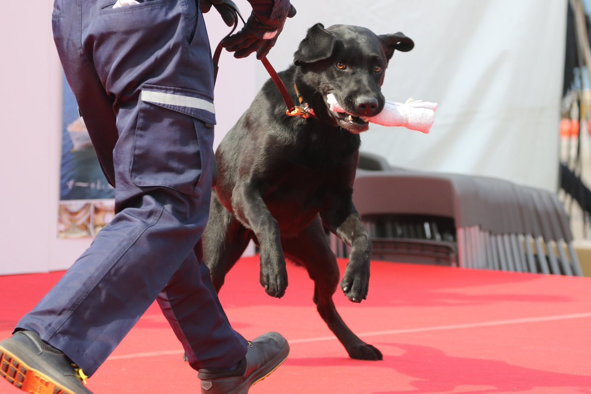 【お知らせ】 神戸税関に麻薬探知犬「ハードル号」が新たに仲間入り! 好奇心旺盛で人懐っこい、2歳メスのラブラドール・レトリバー。 麻薬の臭いを探知して楽しく遊ぶ様子を披露したよ! 目の前に立ちはだかる”ハードル”を飛び越えて活躍するんだワン! #神戸税関 #麻薬探知犬