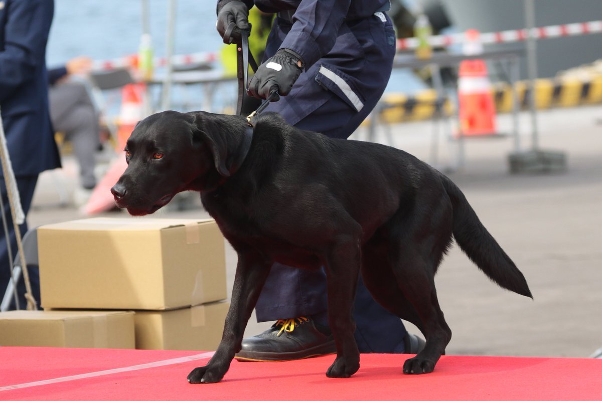 【お知らせ】 神戸税関に麻薬探知犬「ハードル号」が新たに仲間入り! 好奇心旺盛で人懐っこい、2歳メスのラブラドール・レトリバー。 麻薬の臭いを探知して楽しく遊ぶ様子を披露したよ! 目の前に立ちはだかる”ハードル”を飛び越えて活躍するんだワン! #神戸税関 #麻薬探知犬 pic.x.com/rVK5Qhafwb