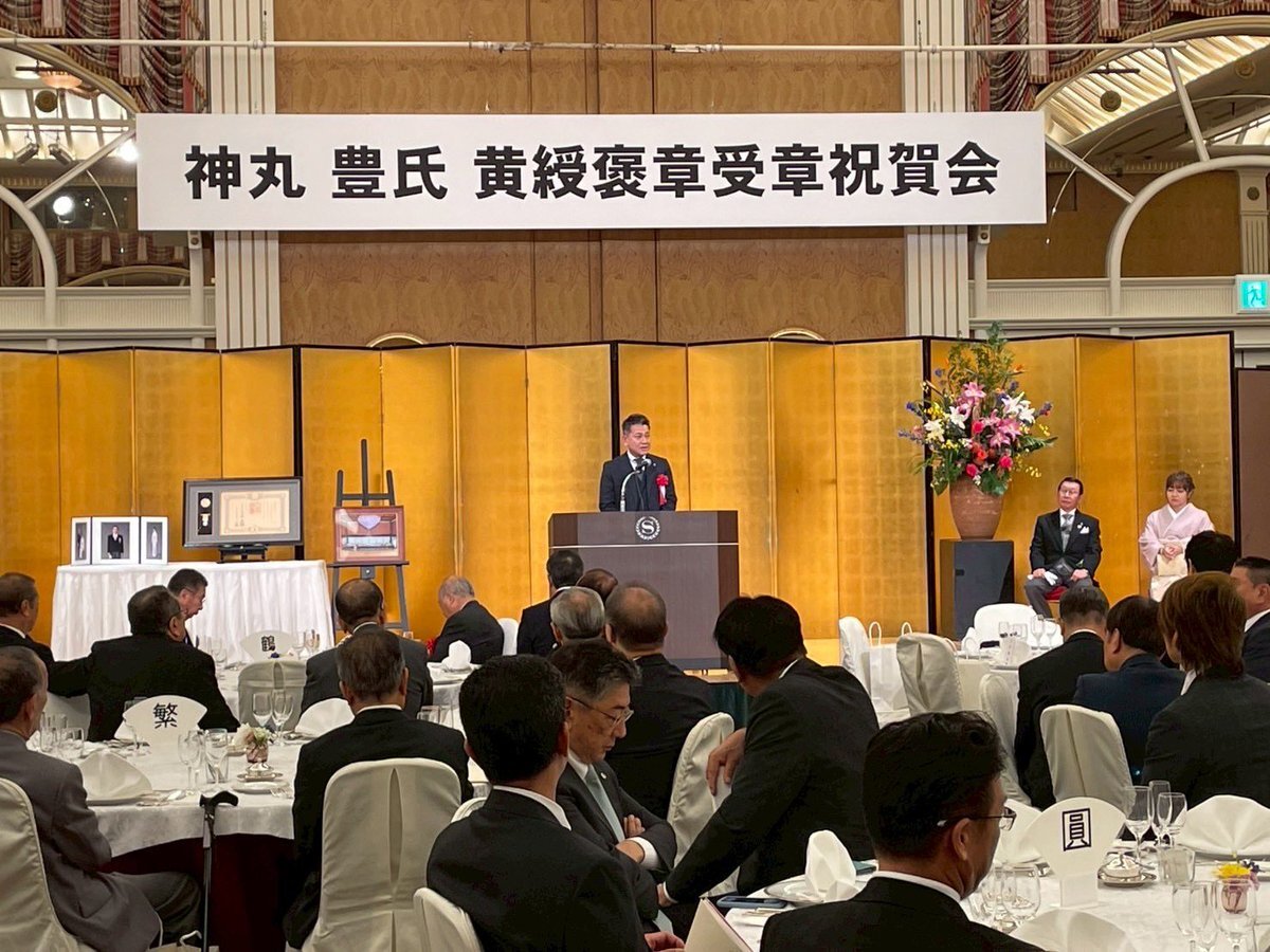 八栄ハウジング代表取締役、全国宅地建物取引業協会連合会理事、大阪府宅建政治連盟第一副会長の #神丸豊様 が令和7年春の褒章に際し #黄綬褒章 を受章され祝賀会にお招きいただきました。 永年にわたり不動産業界の発展に貢献されたご功績に心から感謝申し上げます。受章、誠におめでとうございます㊗️ pic.x.com/JFpWUqU2Ck