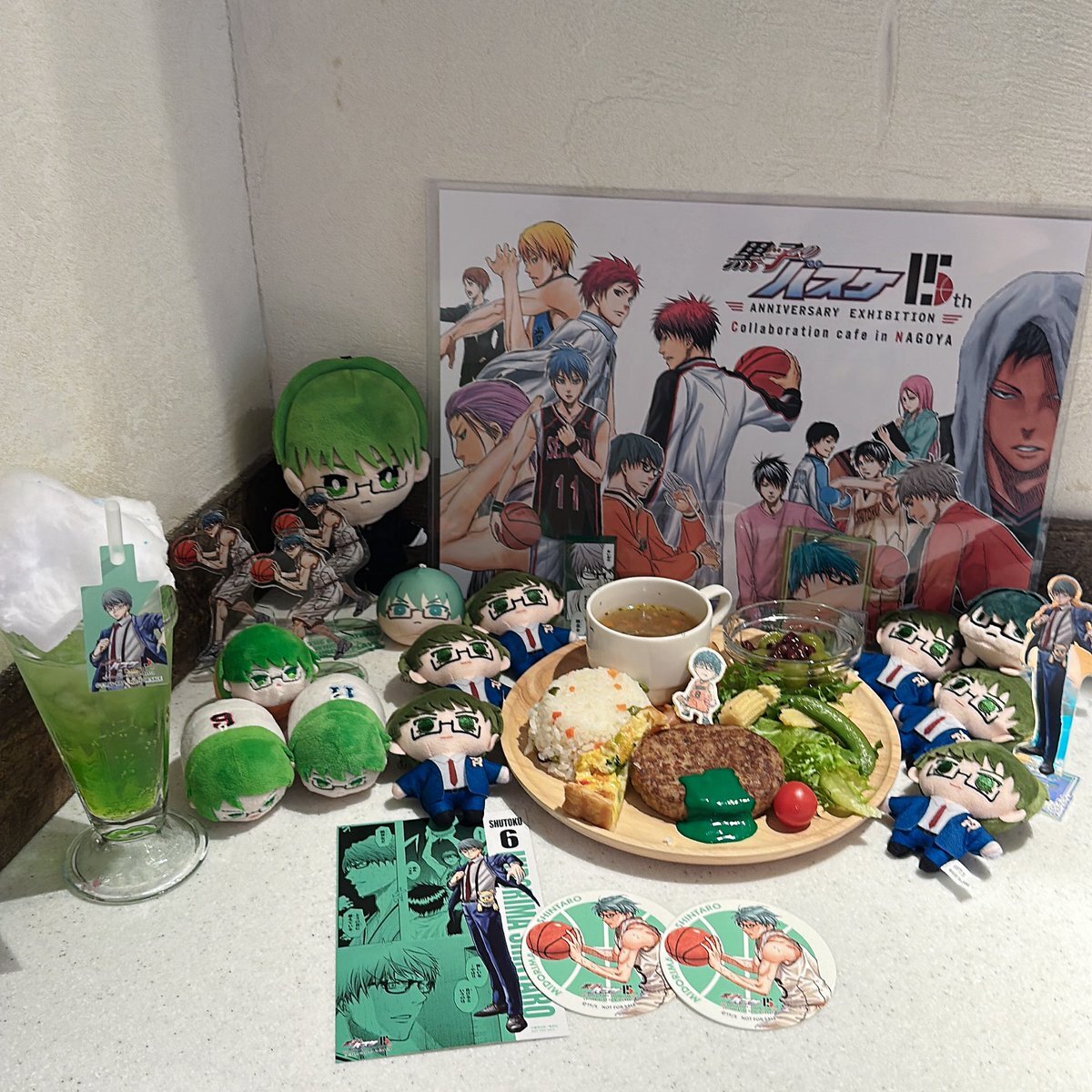 #黒バス展名古屋に行ってきました 展示とカフェそれぞれ2回ずつ参戦して怒涛の一日でしたがそれ以上の幸せをありがとう😭🏀💚🌟 何度見てもやっぱり黒バスは最高です😭🌟 pic.x.com/NzEe4Qlth2
